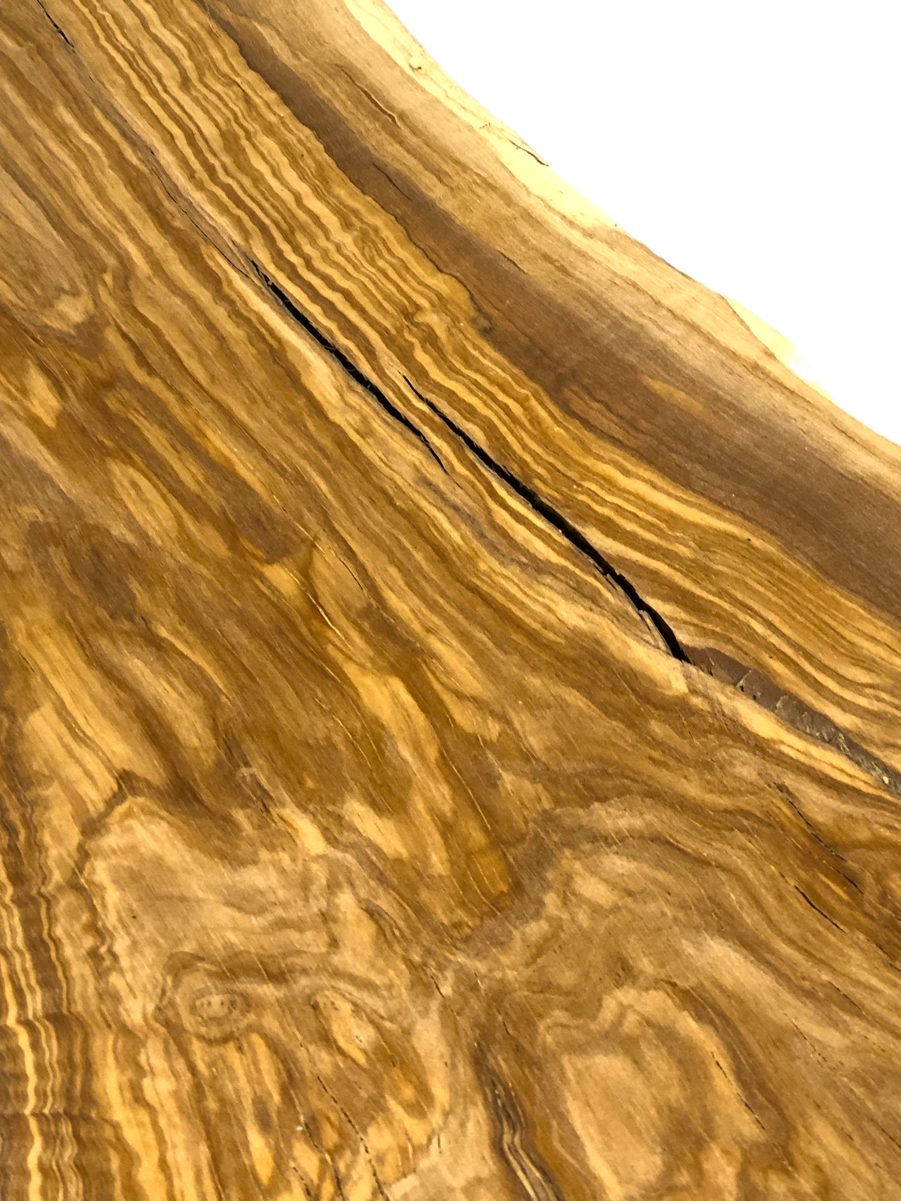 Wichtige Hinweise: Risse und Verwerfungen sind natürliche Eigenschaften von Olivenholz und lassen sich nicht vermeiden. Abweichungen in Struktur, Oberfläche und Maserung sind charakteristische Merkmale von echtem Holz und kein Reklamationsgrund.