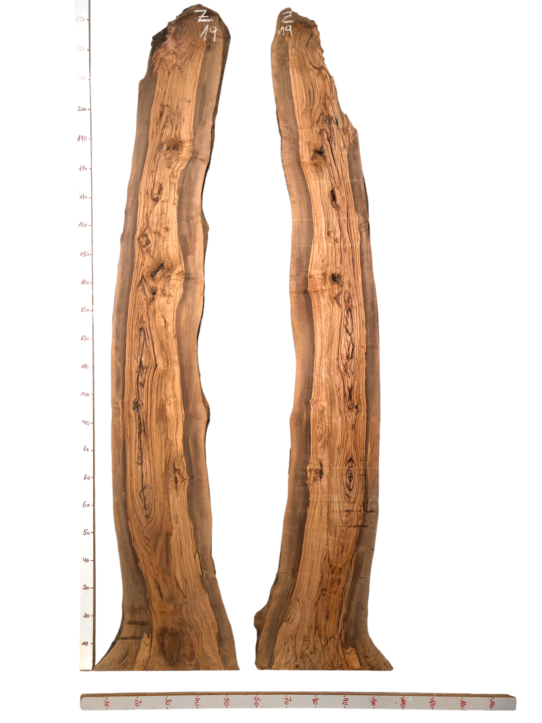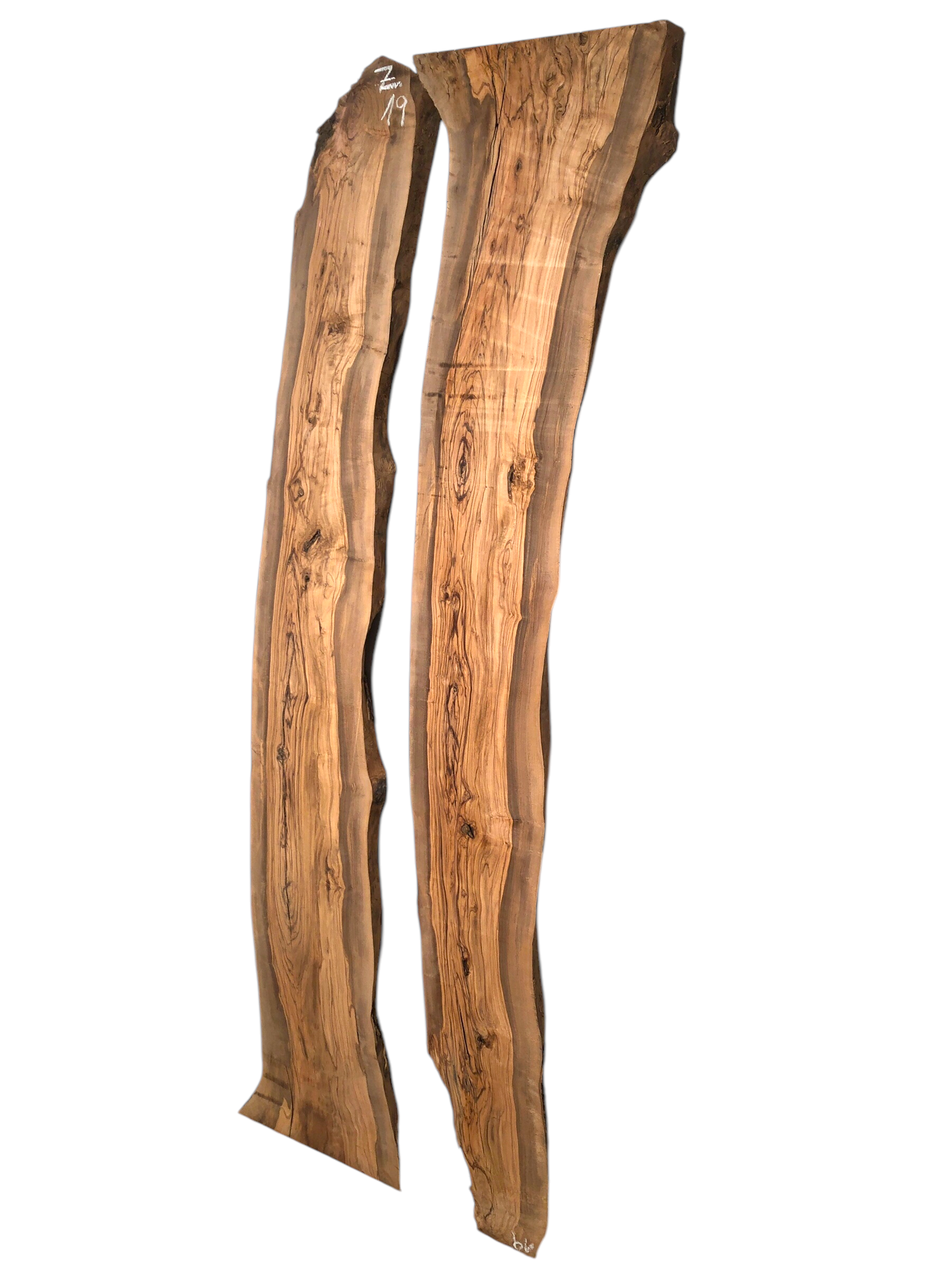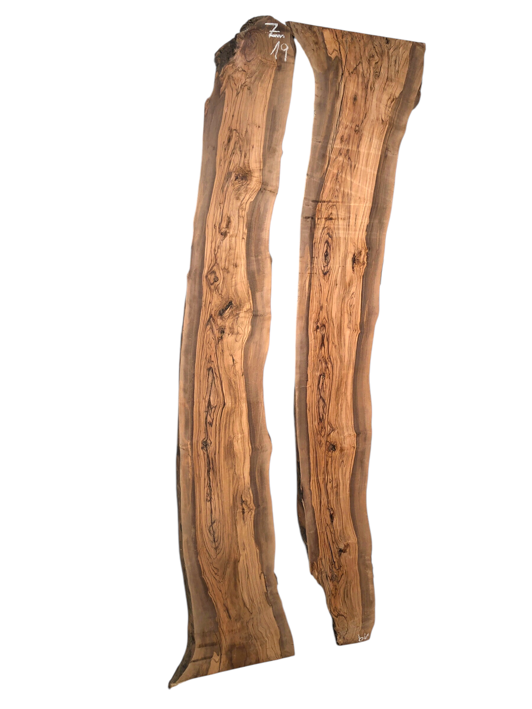 2 Olivenholz Bohlen mit je 4,9 cm Stärke - 235 cm Länge - 25-50 cm Breite