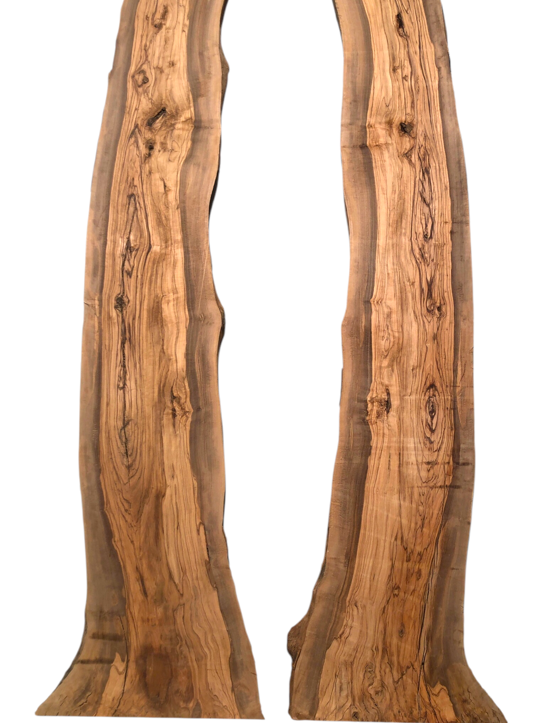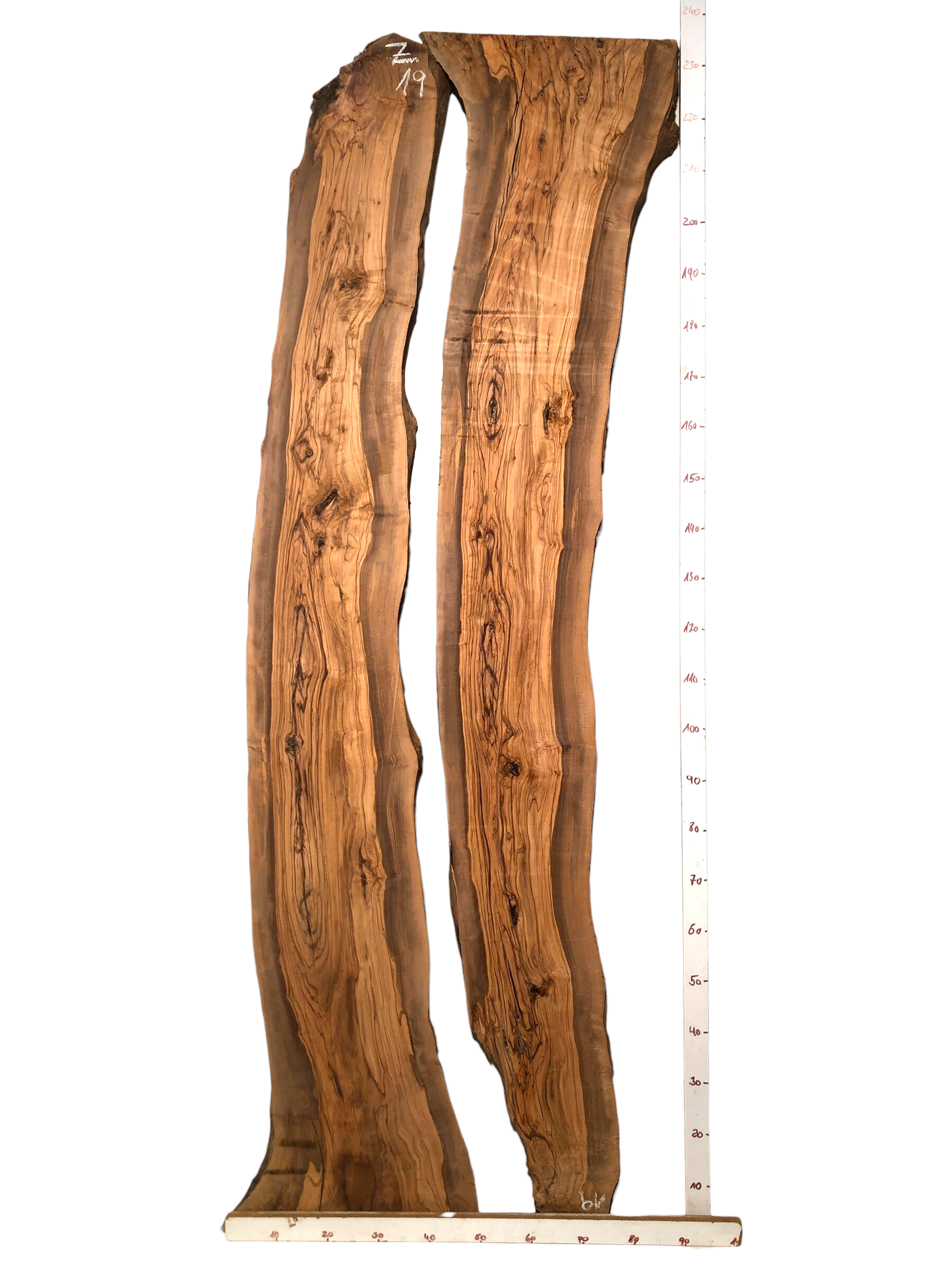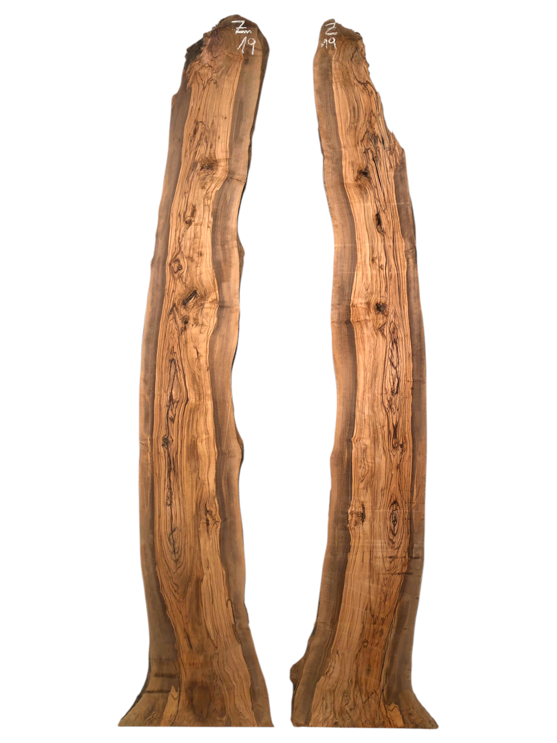 2 Olivenholz Bohlen mit je 4,9 cm Stärke - 235 cm Länge - 25-50 cm Breite