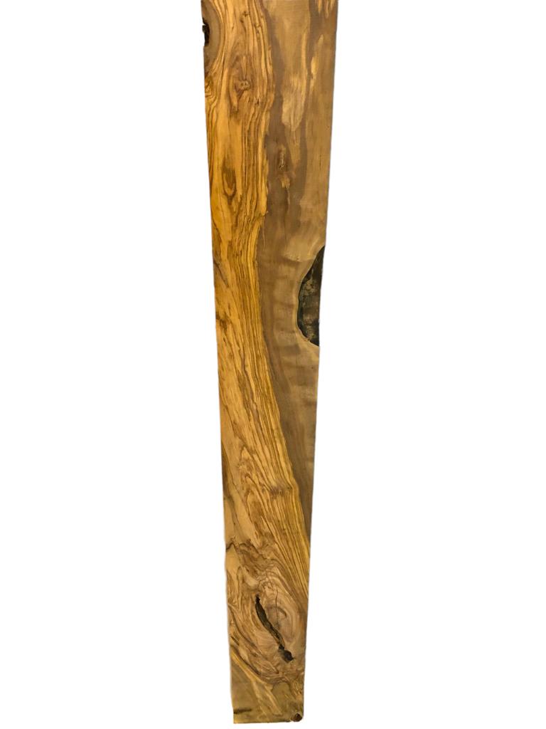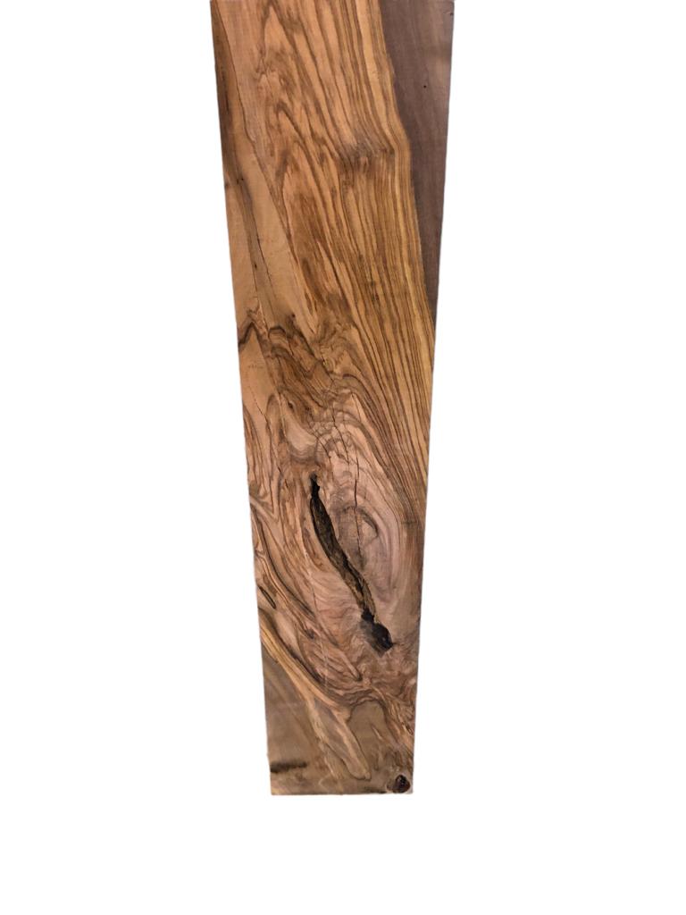 Dieses erstklassig strukturierte Olivenholzbrett ist ein Highlight für alle, die die Schönheit von Olivenholz zu schätzen wissen. Das Brett wurde besäumt und vorgehobelt, sodass es bereits eine ansprechende Form besitzt. Die natürlichen Löcher und Risse betonen den unverwechselbaren Charakter und die Einzigartigkeit dieses Materials, das in vielen kreativen Projekten genutzt werden kann.