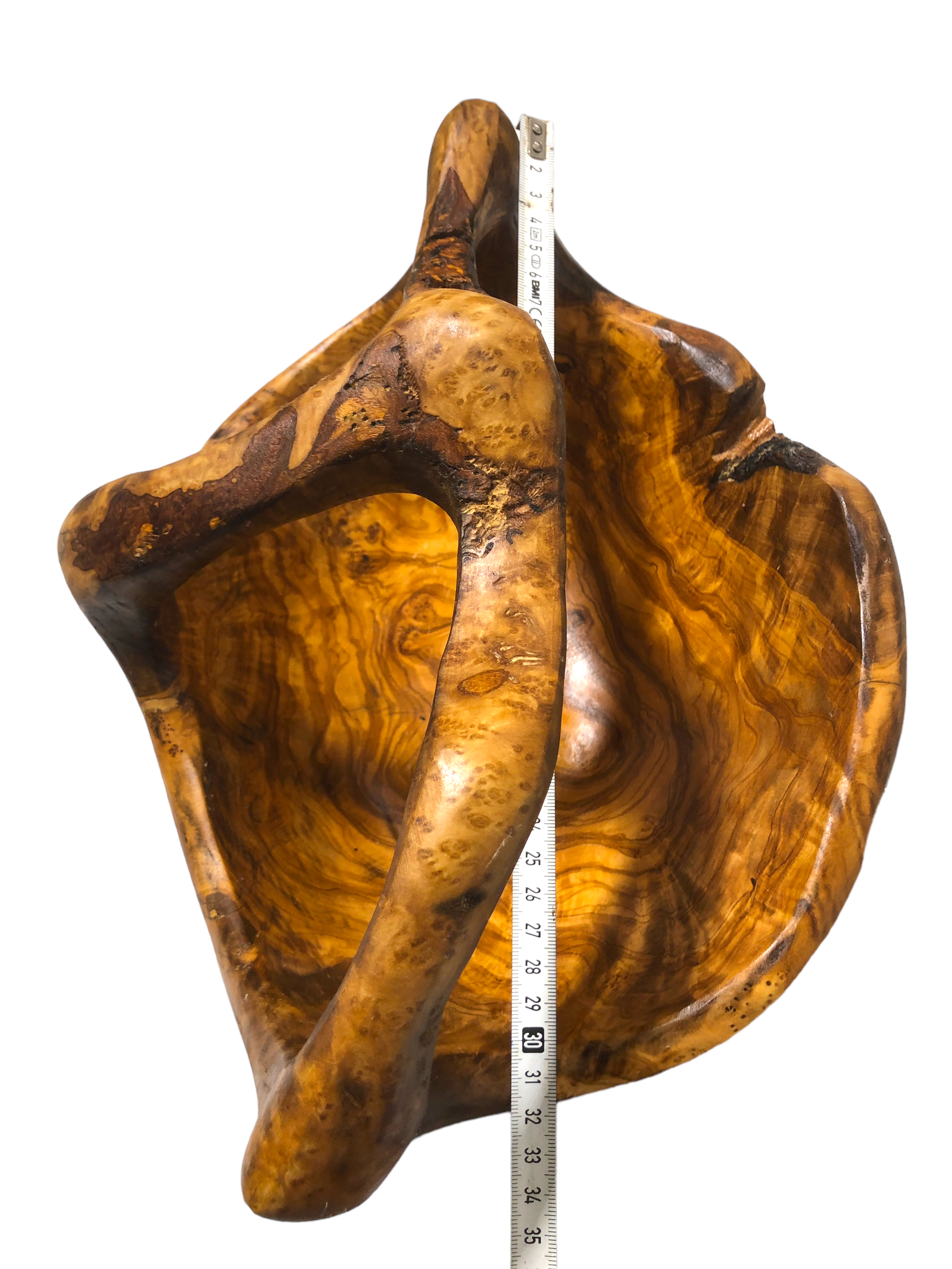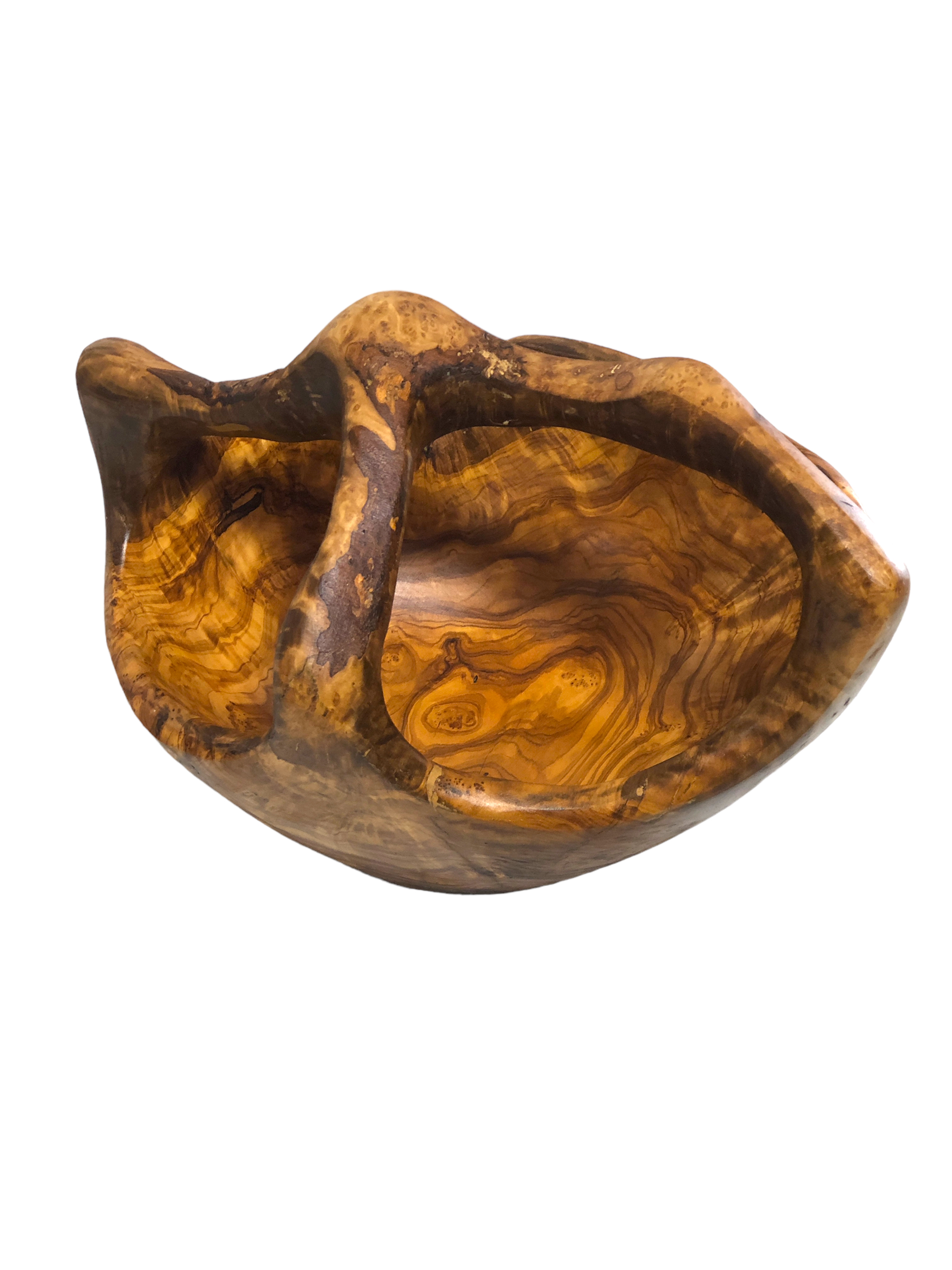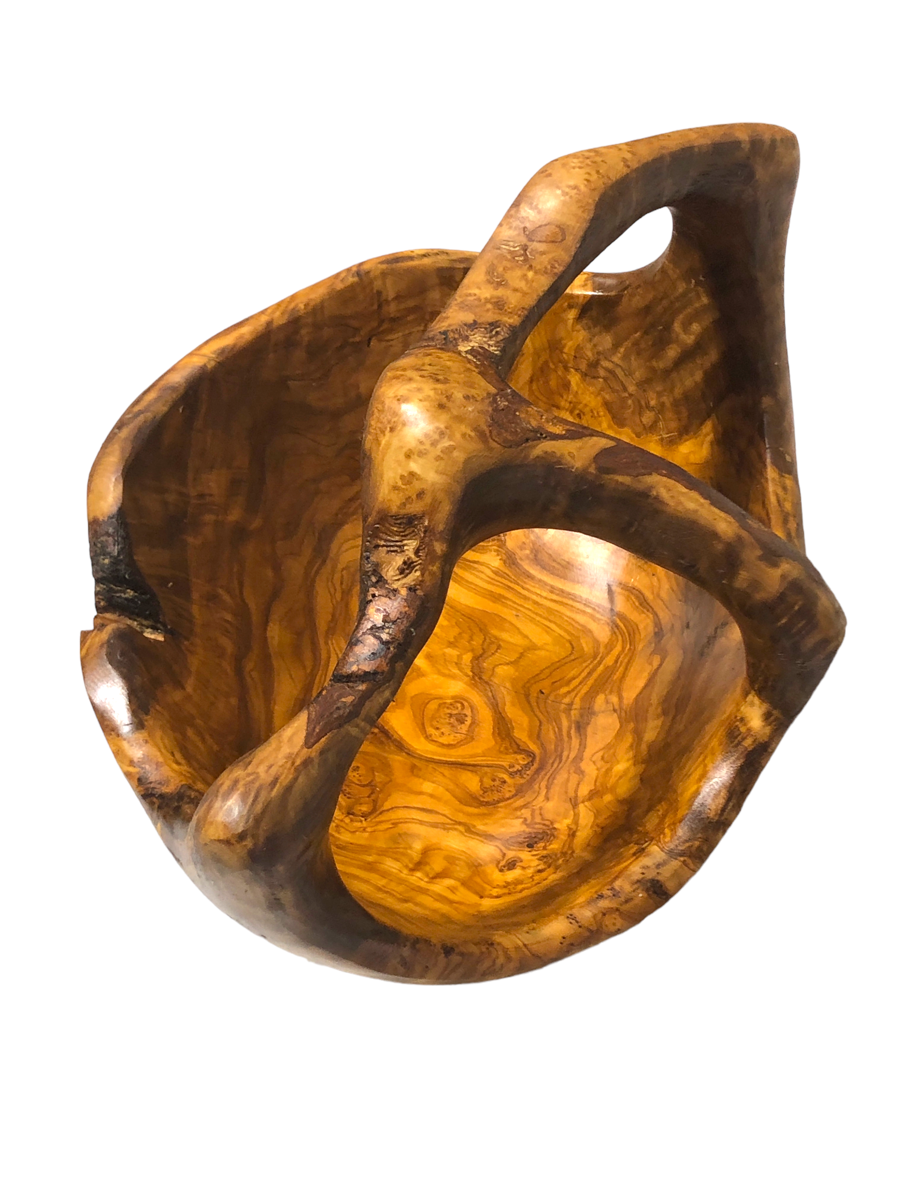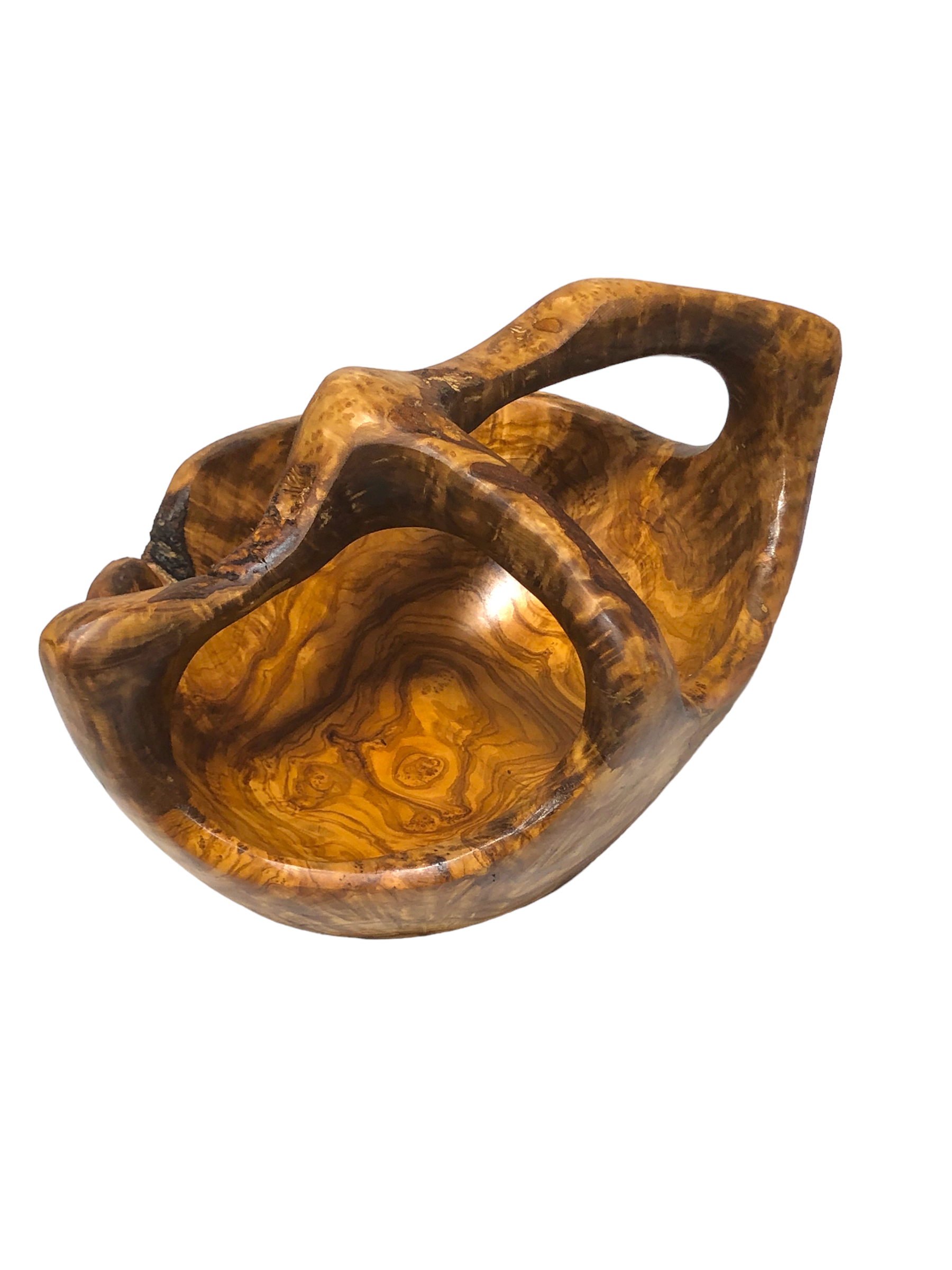 Handgeschnitzter Olivenholz Korb – Mit starker Maserung und hohem Kernanteil