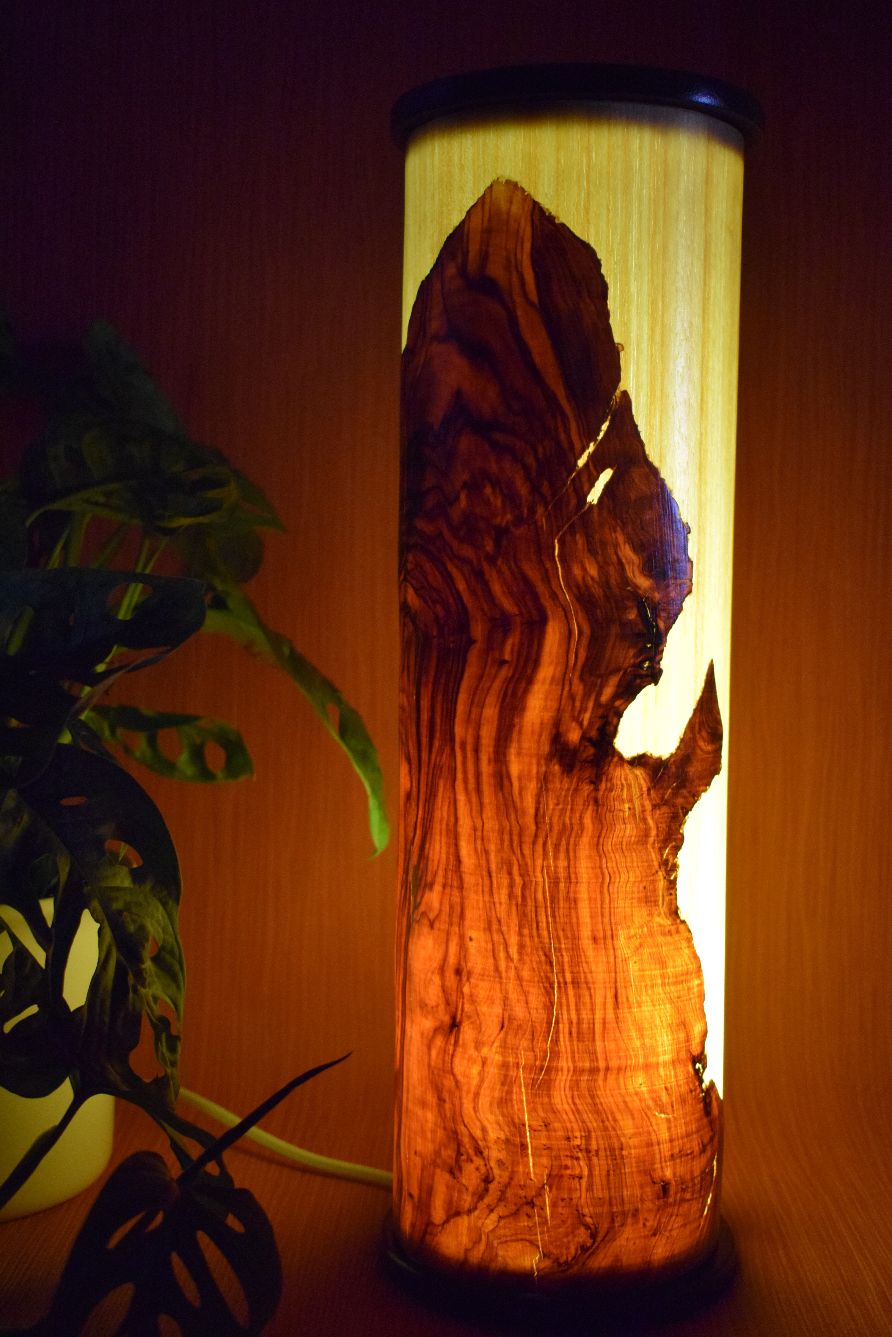 Olimba Lichtsäule aus Olivenholz und Limbaholz