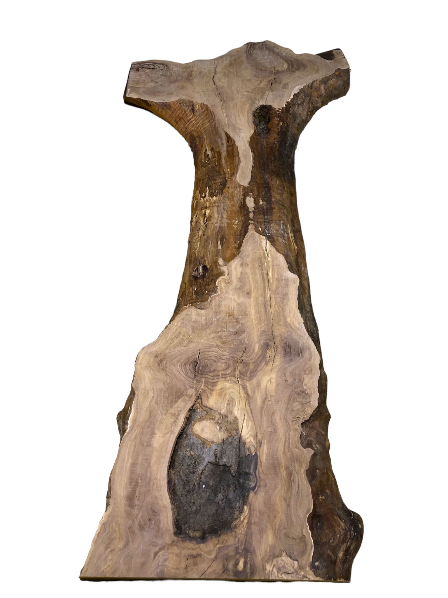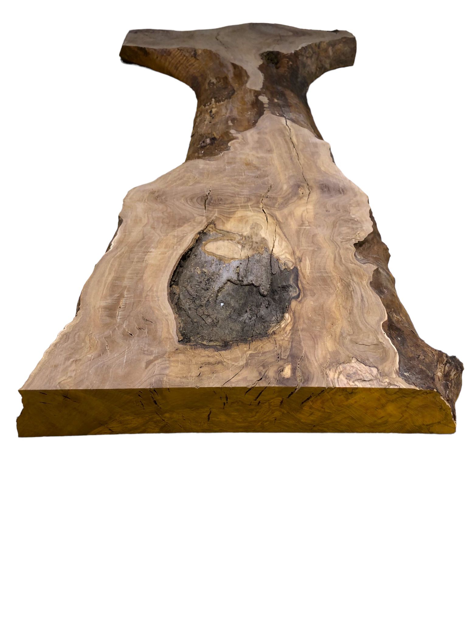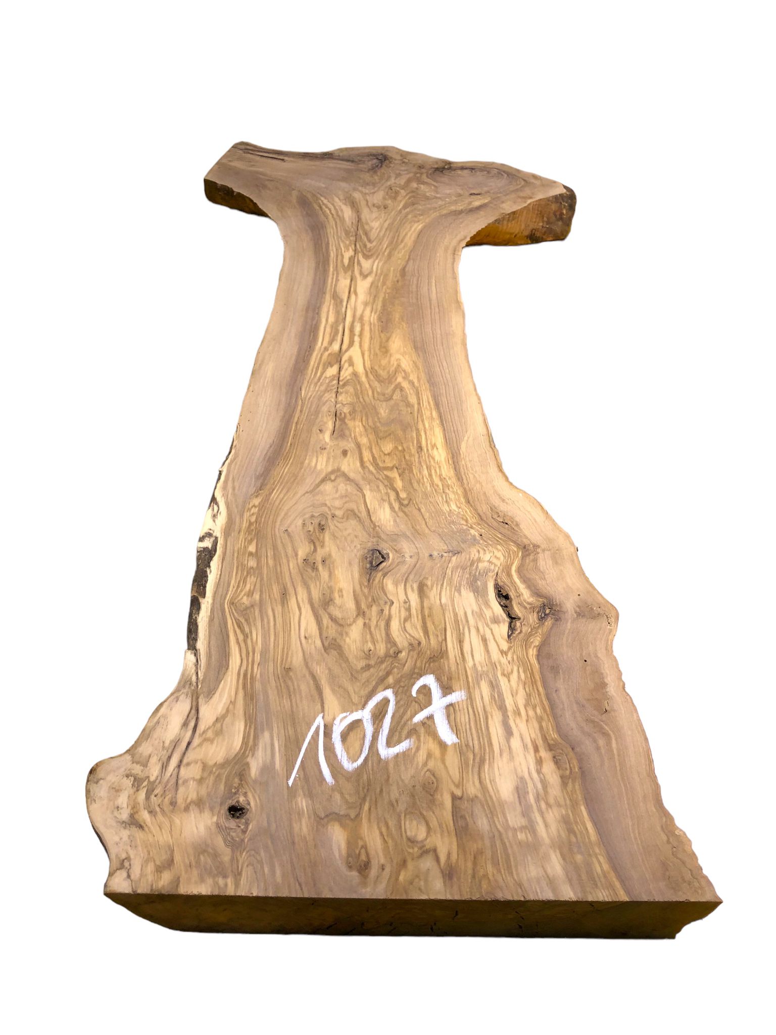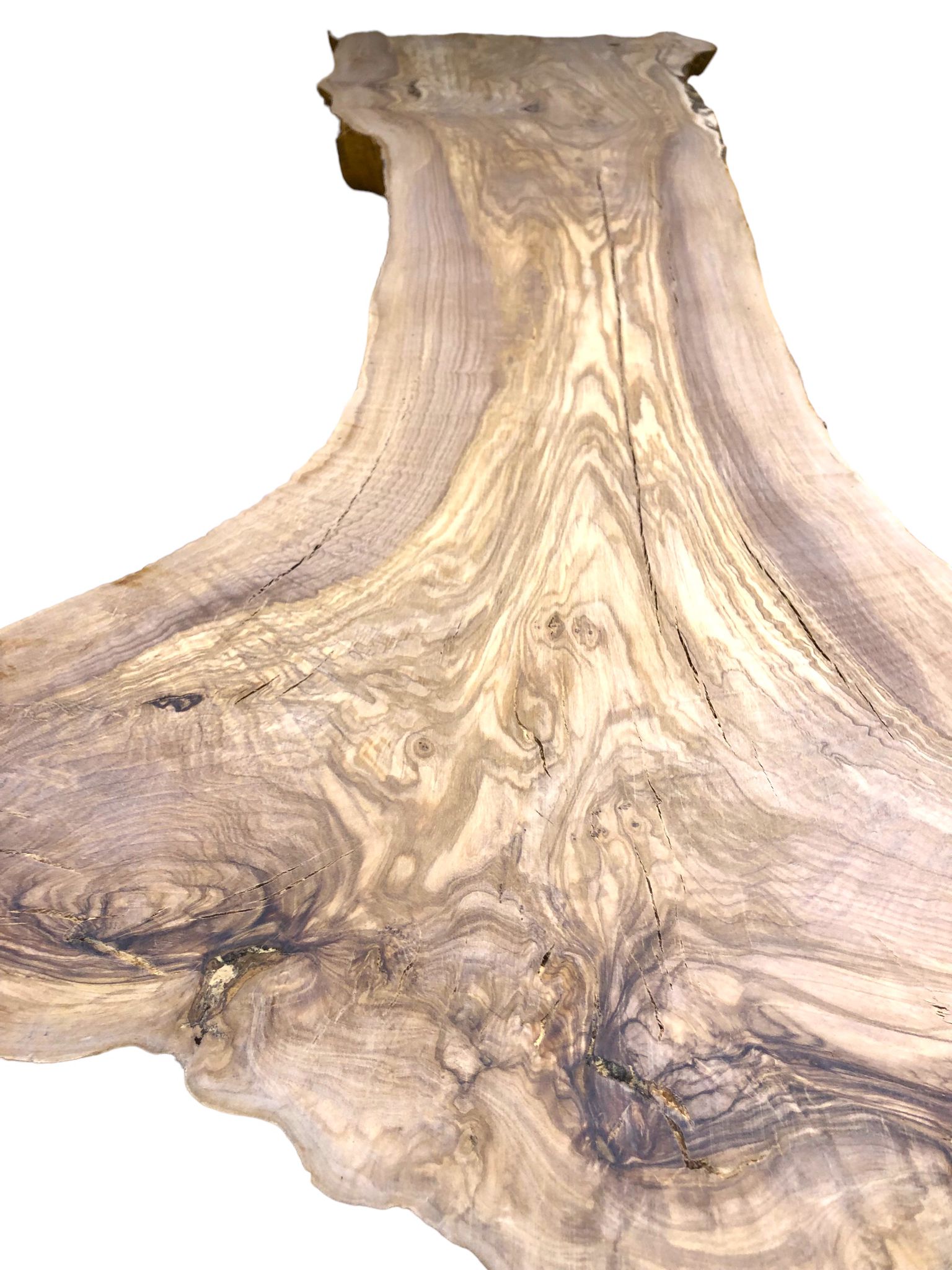 Uriges Olivenholzbrett mit Gabelung und Rindenanteil – Hervorragendes Ausgangsmaterial für rustikale Projekte