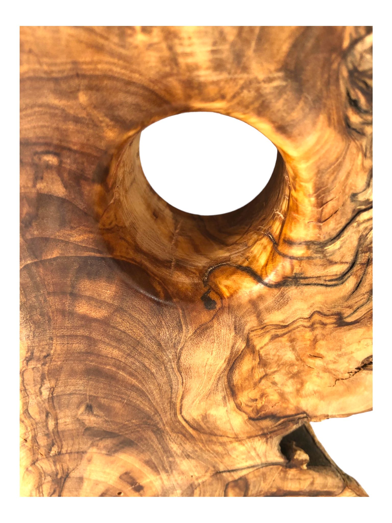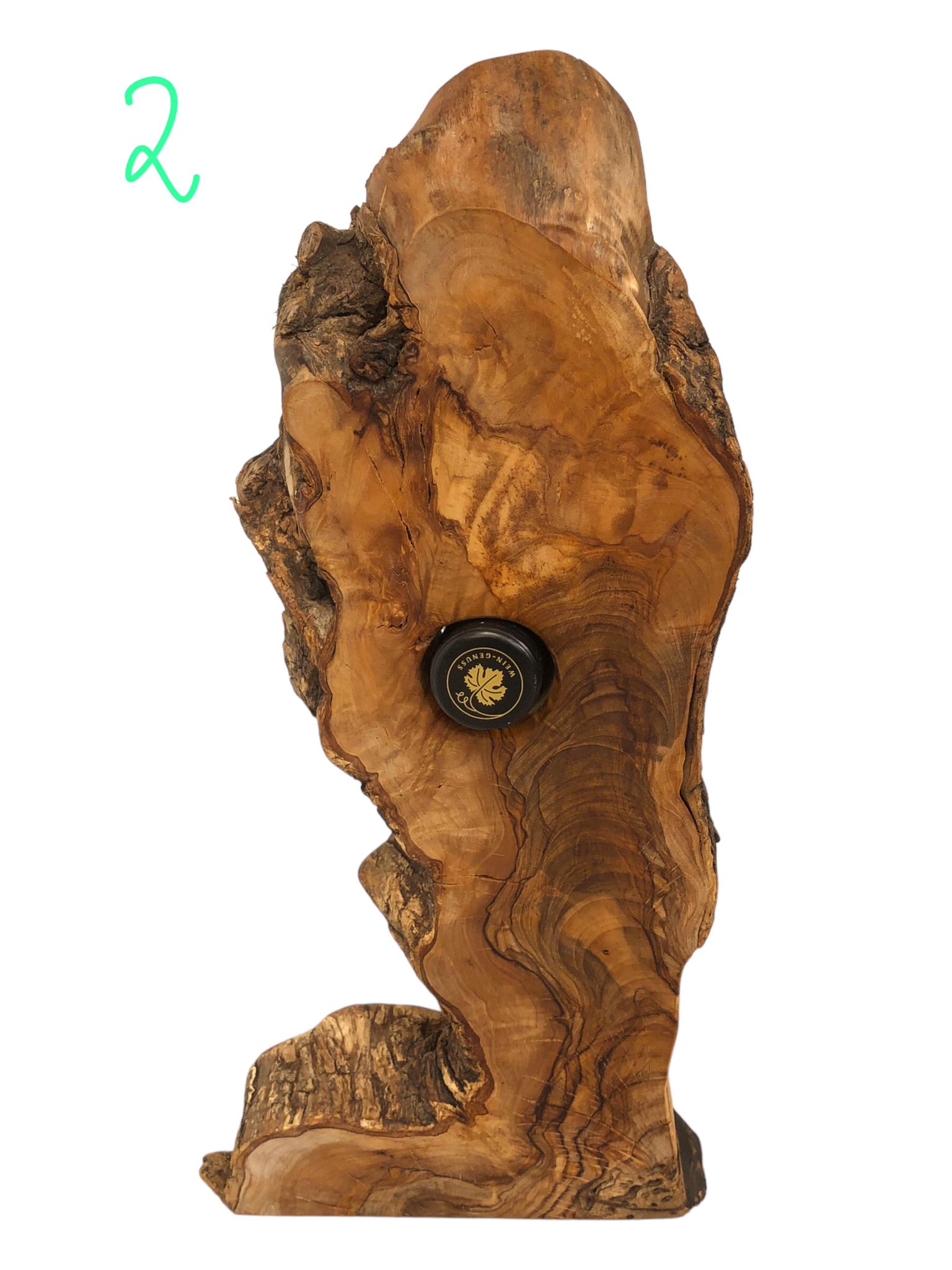 Rustikaler und toll strukturierter Weinflaschenhalter aus Olivenholz.