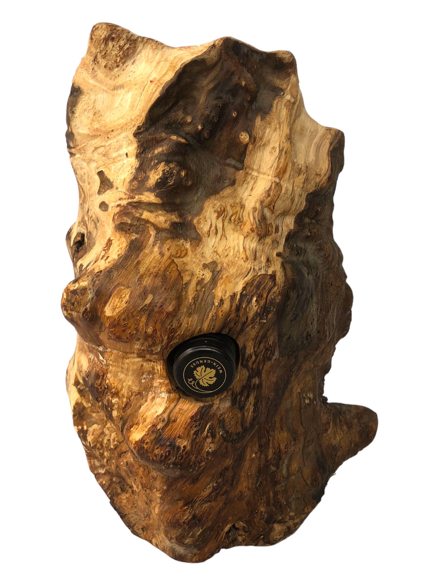 Traumhaft gemaserter Weinflaschenhalter aus Olivenholz.