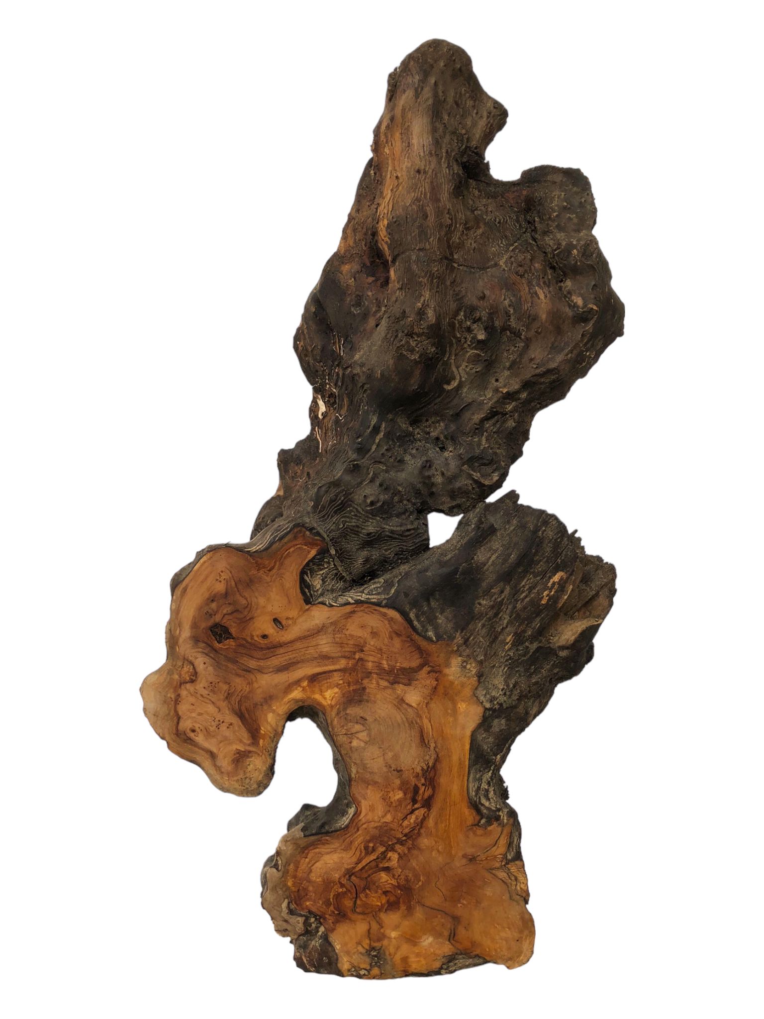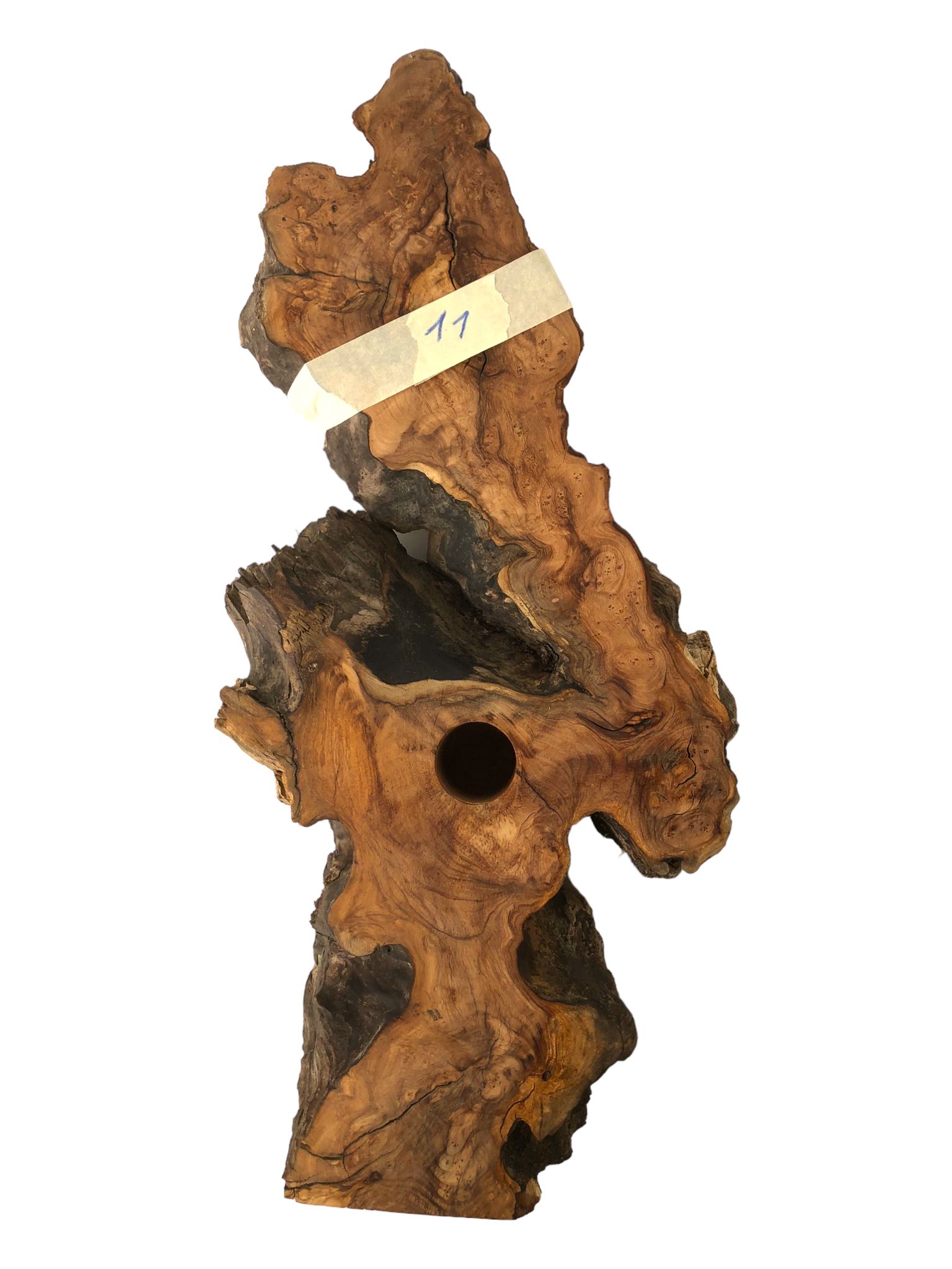 Imposanter und einmalig schön strukturierter Weinflaschenhalter aus einem Olivenholzwurzelstück.