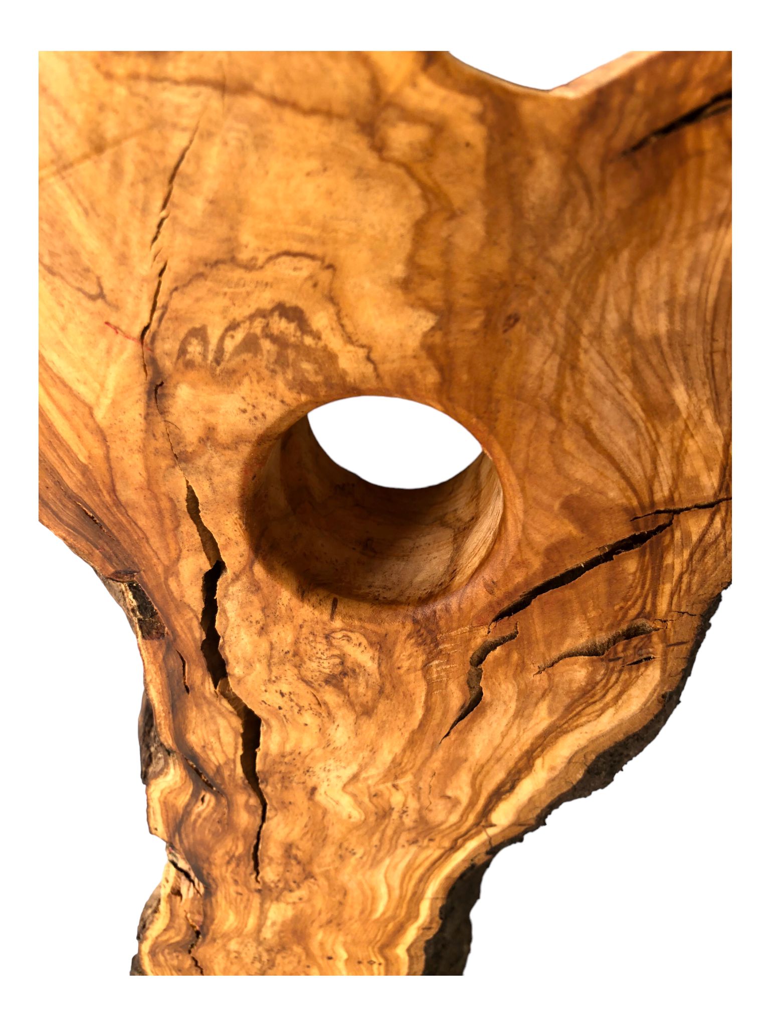 Dieser Olivenholz Weinflaschenhalter wurde mit der Hand geschliffen und poliert.