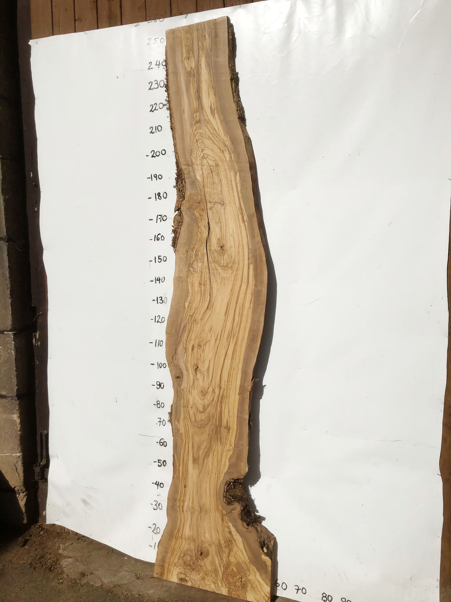 Traumhaft große Olivenholz Bohle – 250 cm von einem über 380 Jahre alten Baum