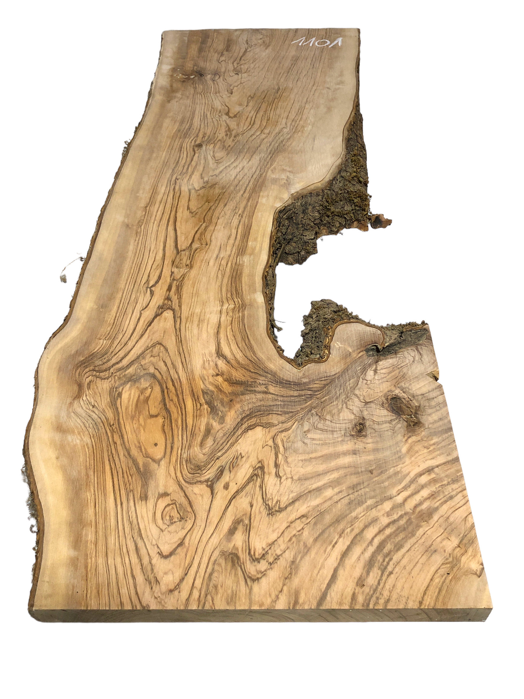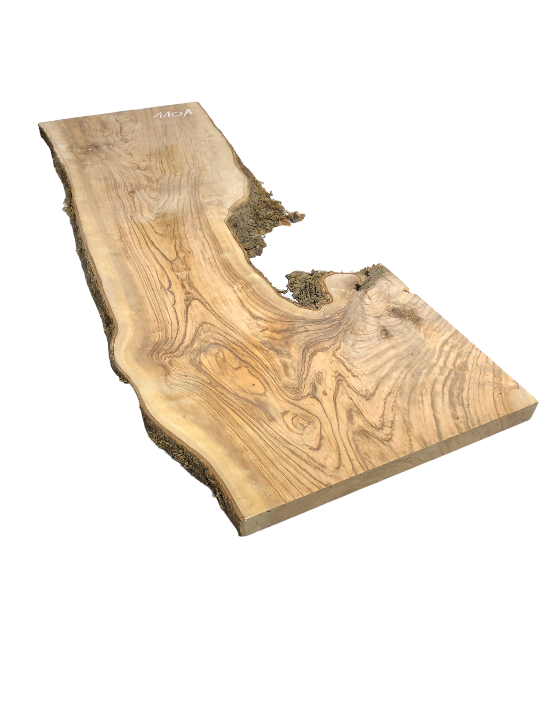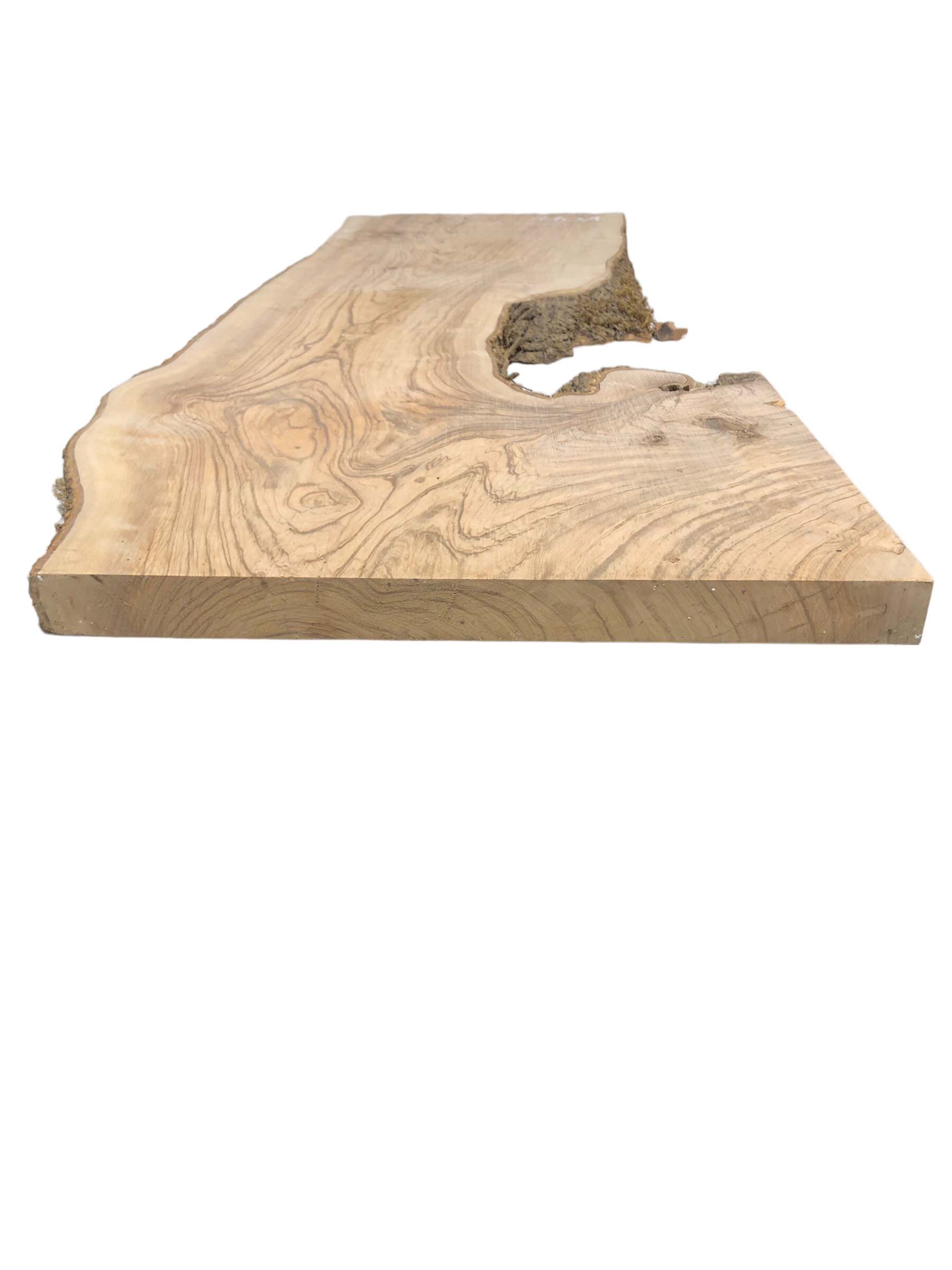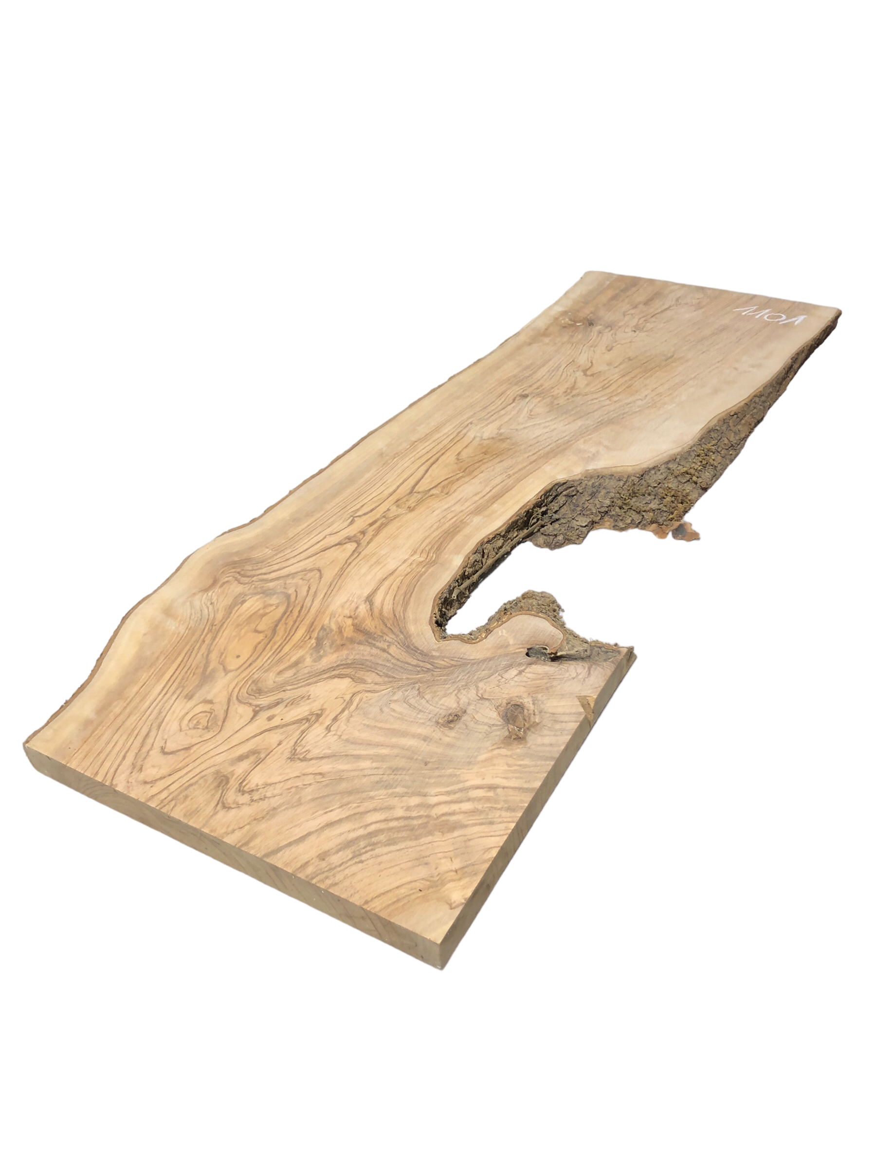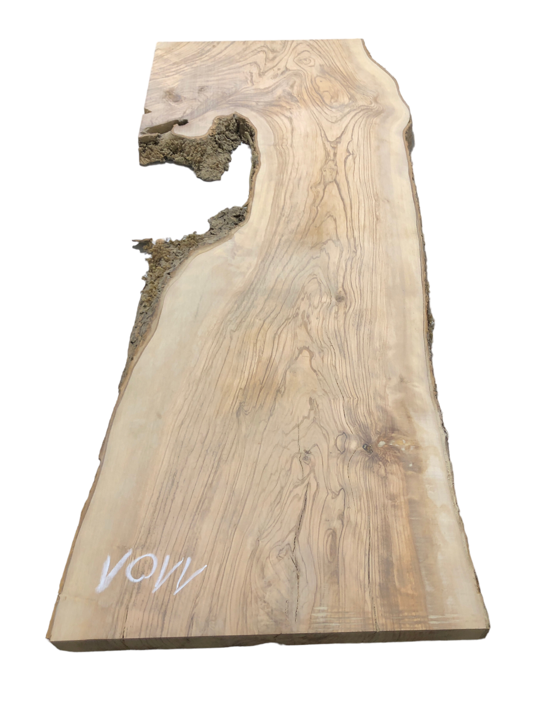 Dieses sehr breite und stabile Olivenbaumbrett besticht durch seine interessante Form, eine wunderschöne Struktur und einen festen Rindenanteil. Es eignet sich ideal, um in Verbindung mit Epoxidharz zu einem Couchtisch oder ähnlichen Projekten verarbeitet zu werden. Auch ohne Epoxy ist das Brett stabil genug, um beispielsweise ein Steinwaschbecken zu tragen.