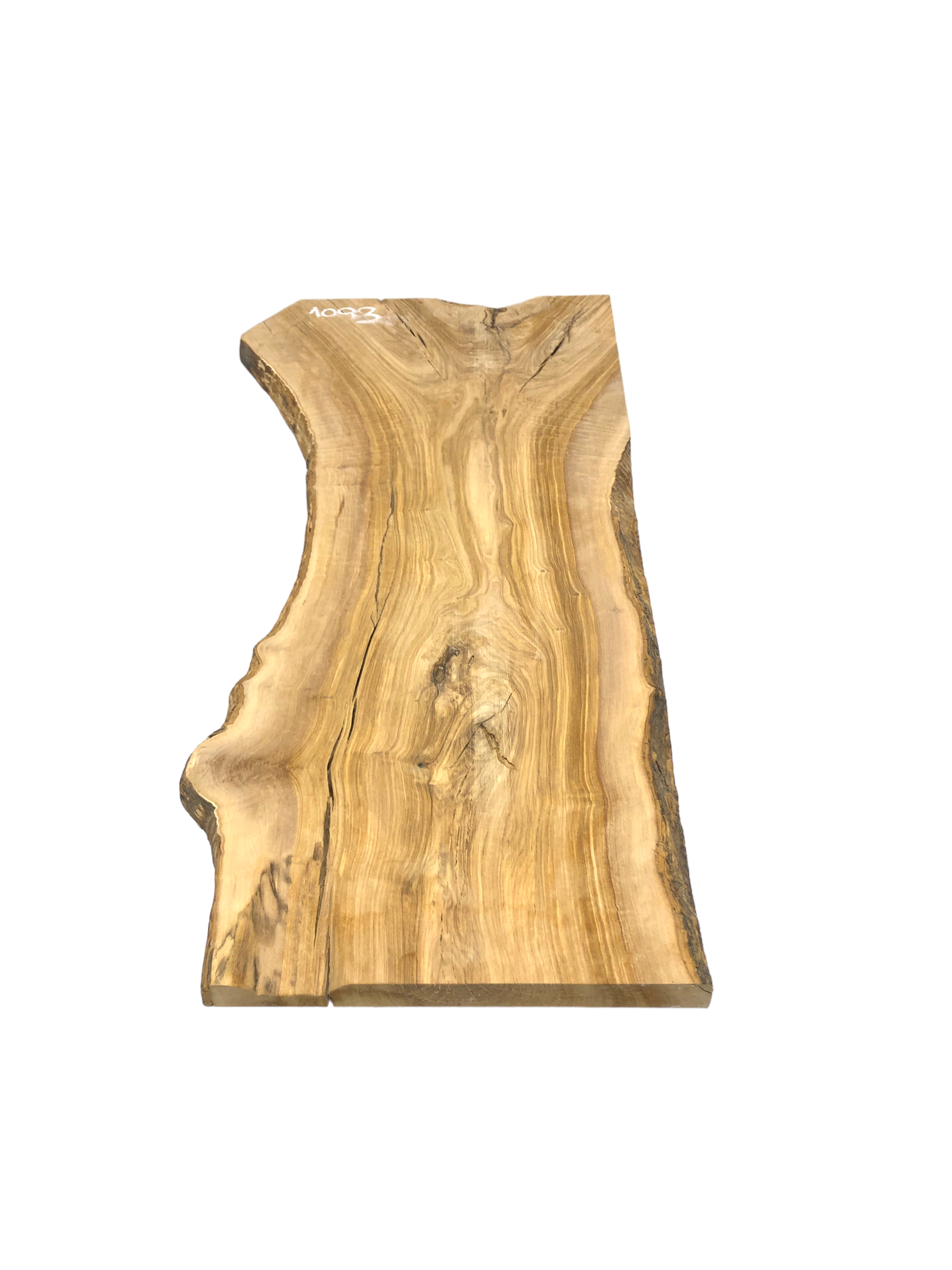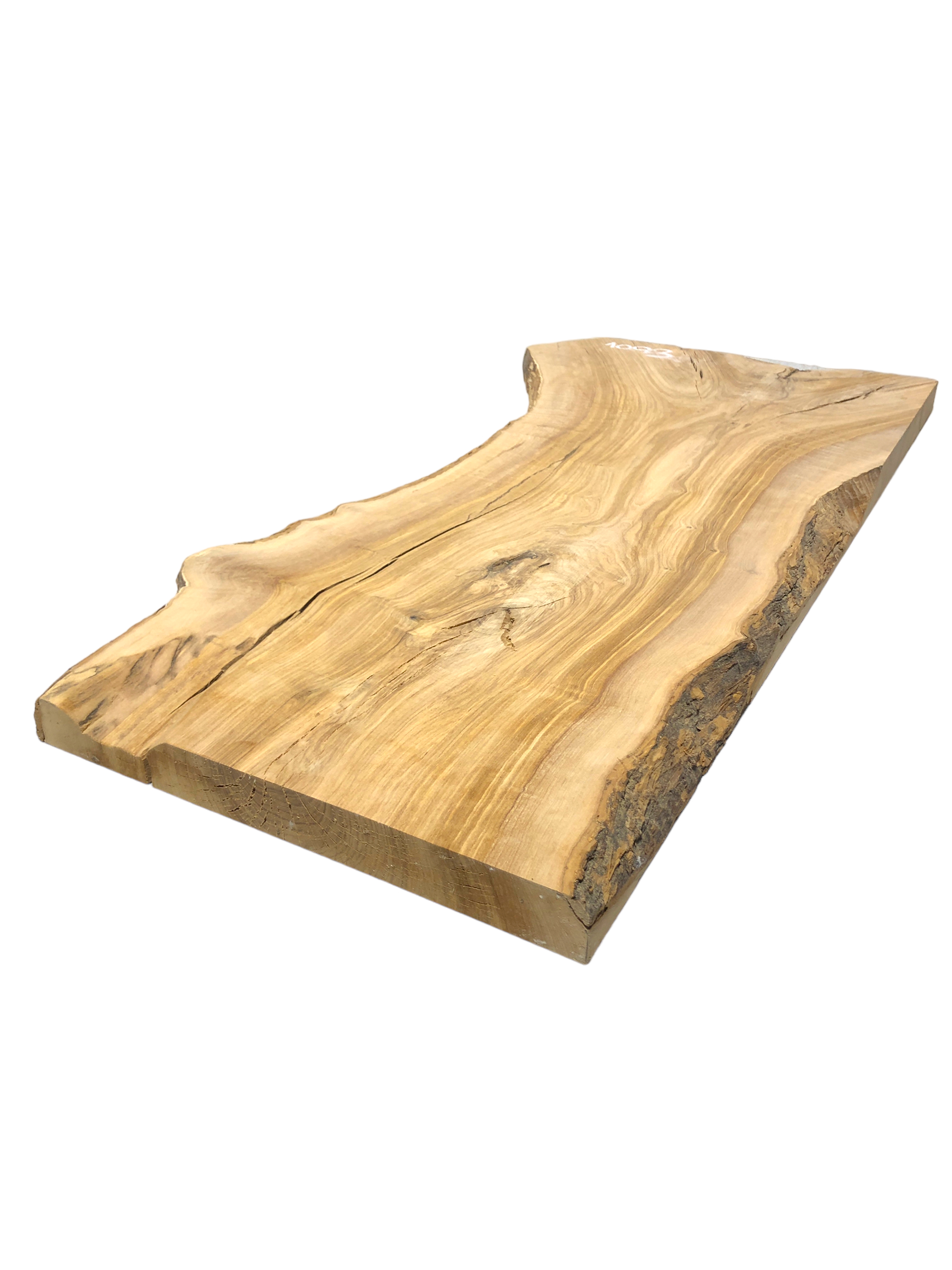 Dieses breite und einseitig gerade geschnittene Olivenholzbrett überzeugt durch seine natürliche Schönheit und ist vielseitig einsetzbar. Trotz leichter Rissbildung bleibt das Brett stabil und tragfähig, und die Risse verleihen ihm einen einzigartigen Charakter. Die Platte wurde über 6 Jahre schonend an der Luft getrocknet, was die Langlebigkeit des Holzes sichert. An einer Ecke wurde eine ungleiche Stelle bereits beigeschliffen (siehe Bilder).