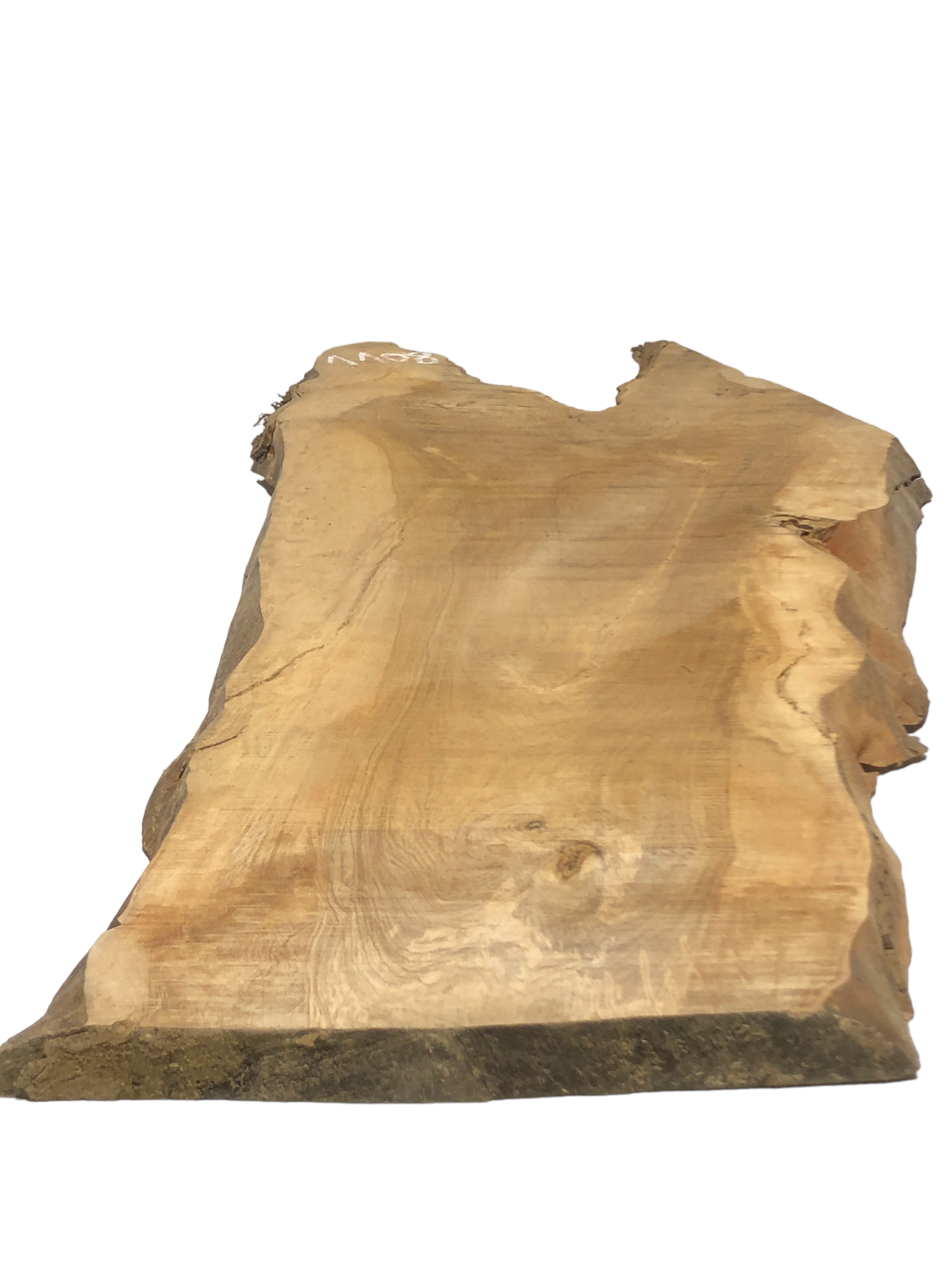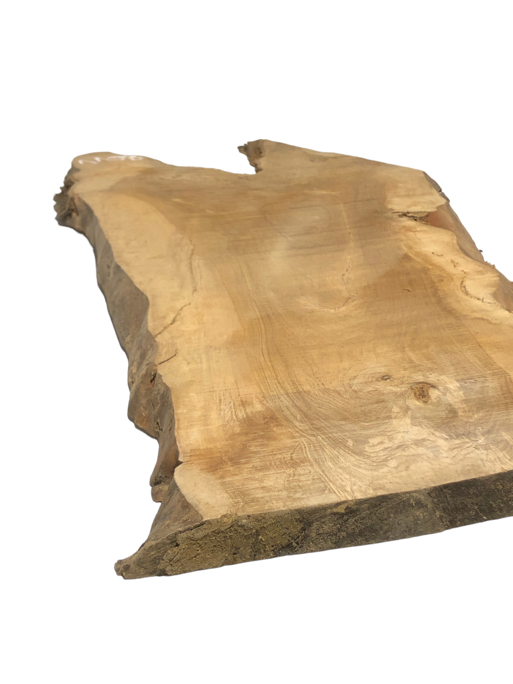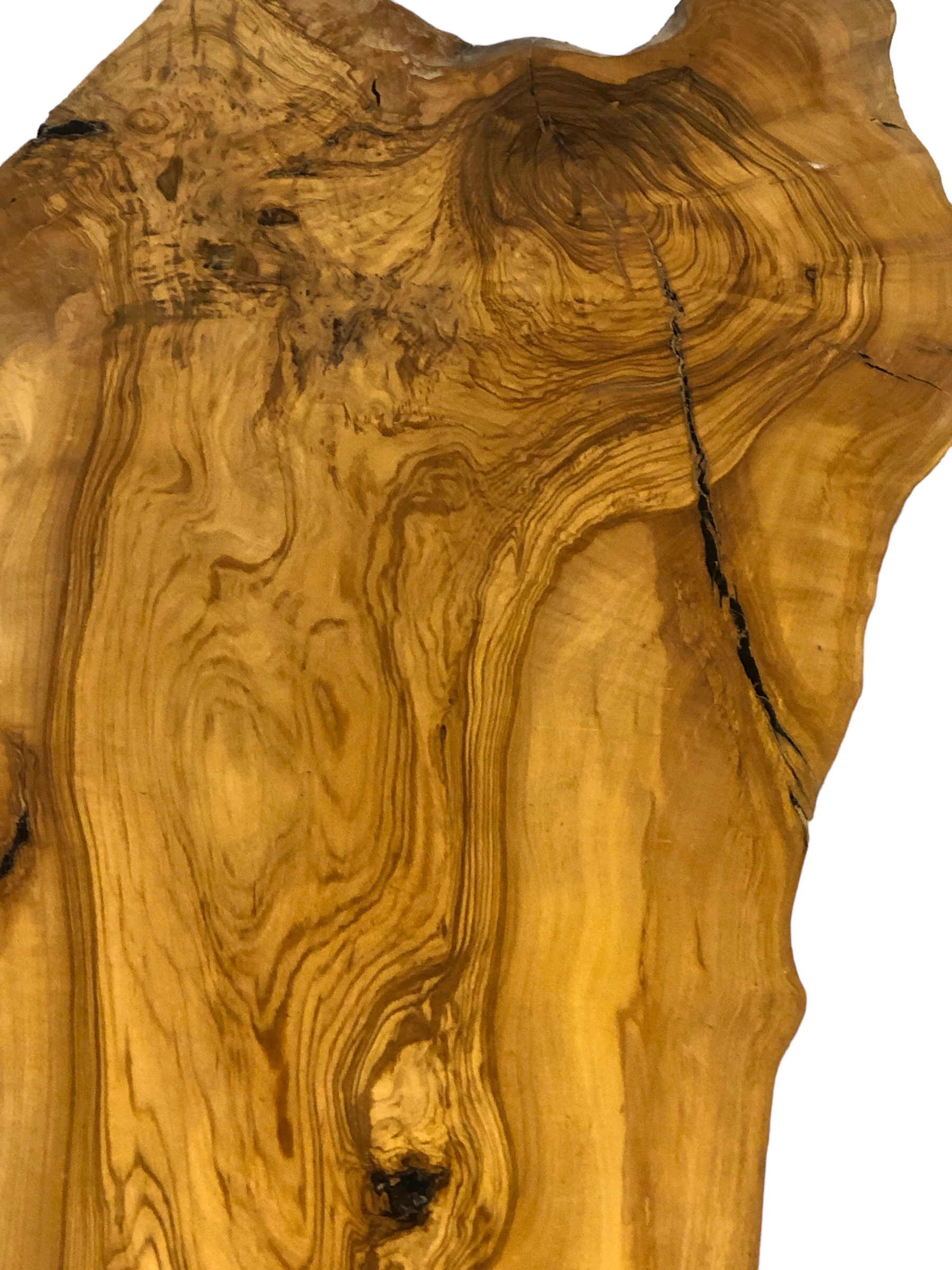 Breites, ungeschliffenes Olivenholzbrett mit bezaubernder Maserung - ein Rohdiamant in Sachen Maserung