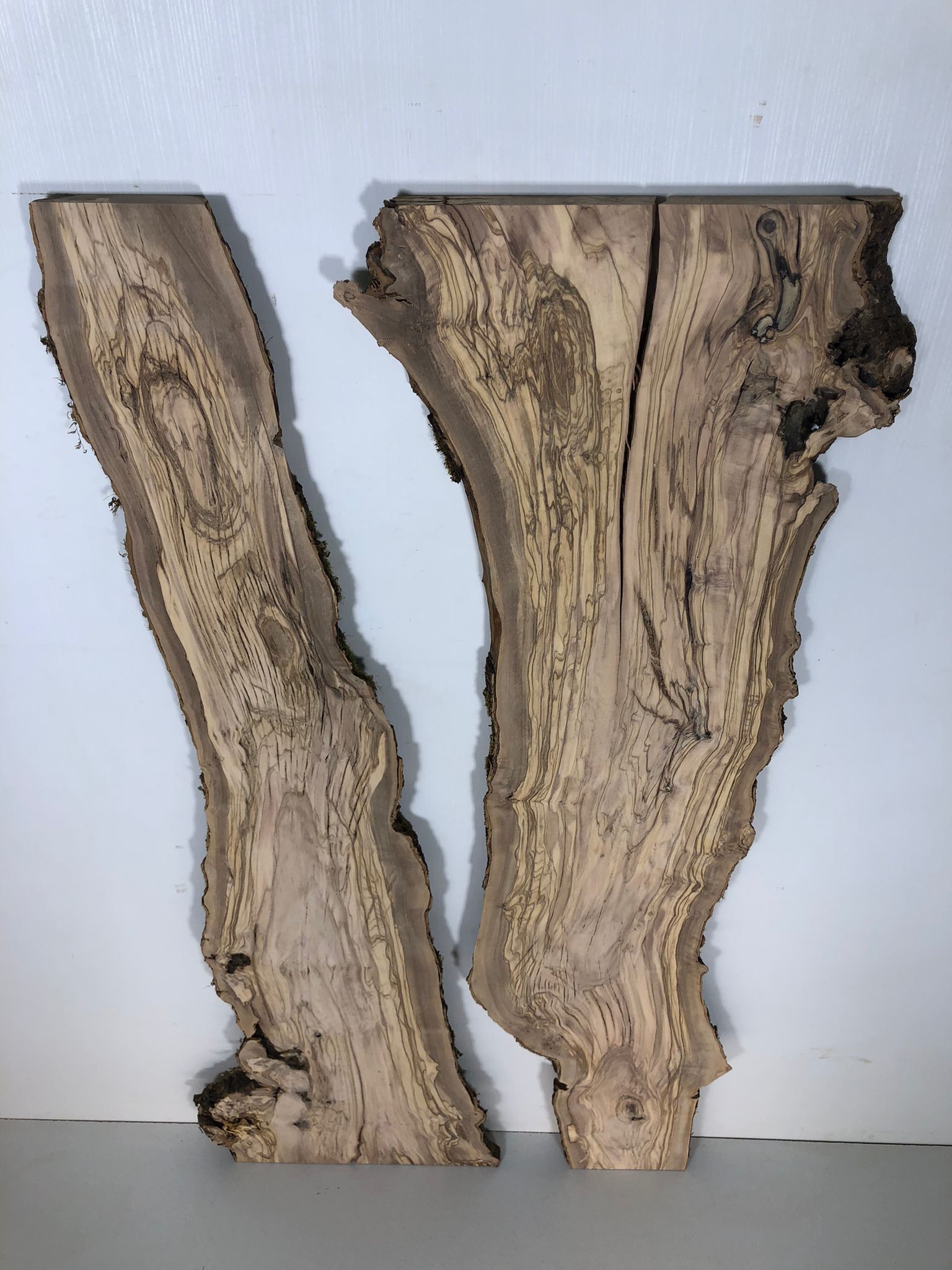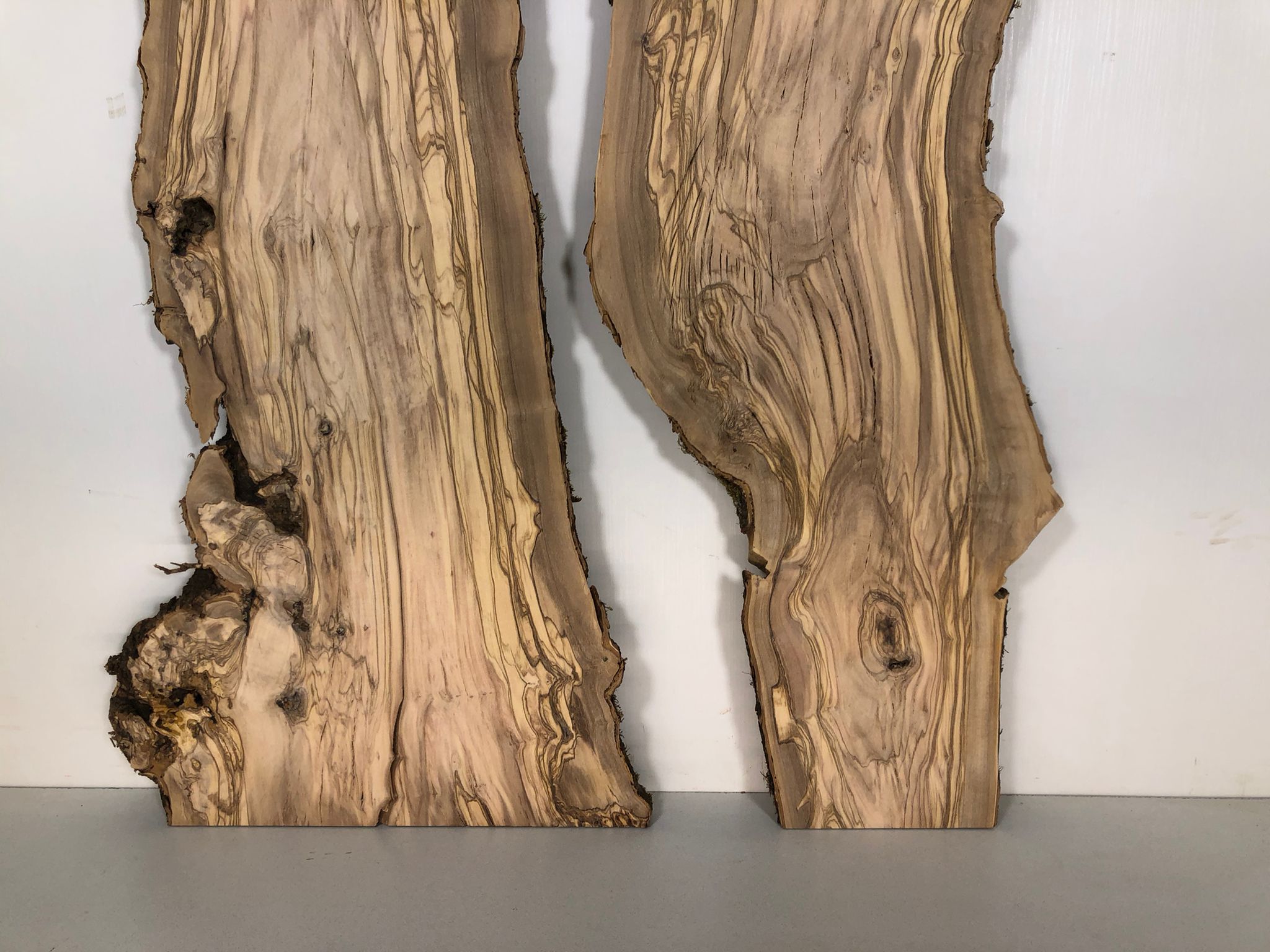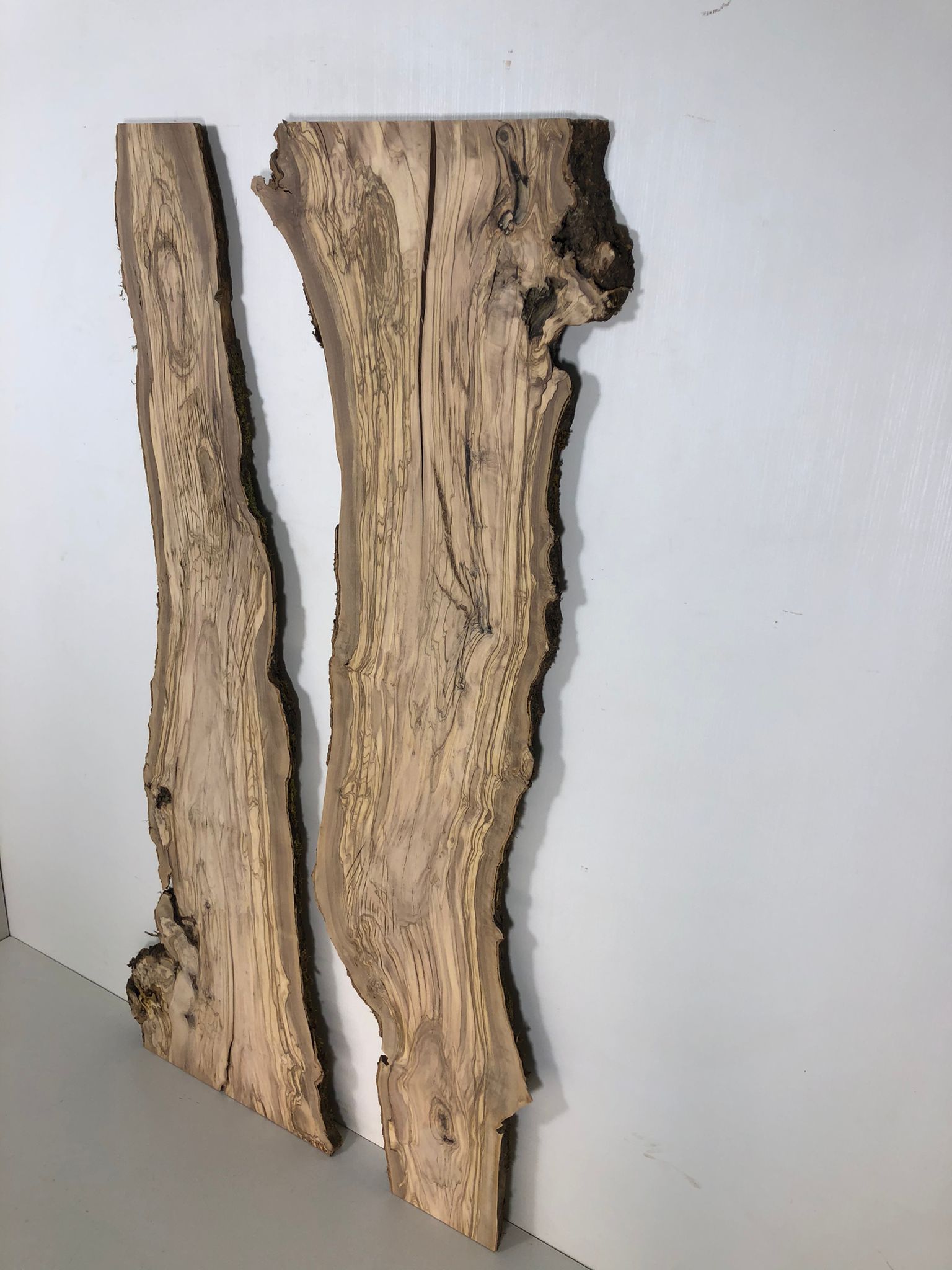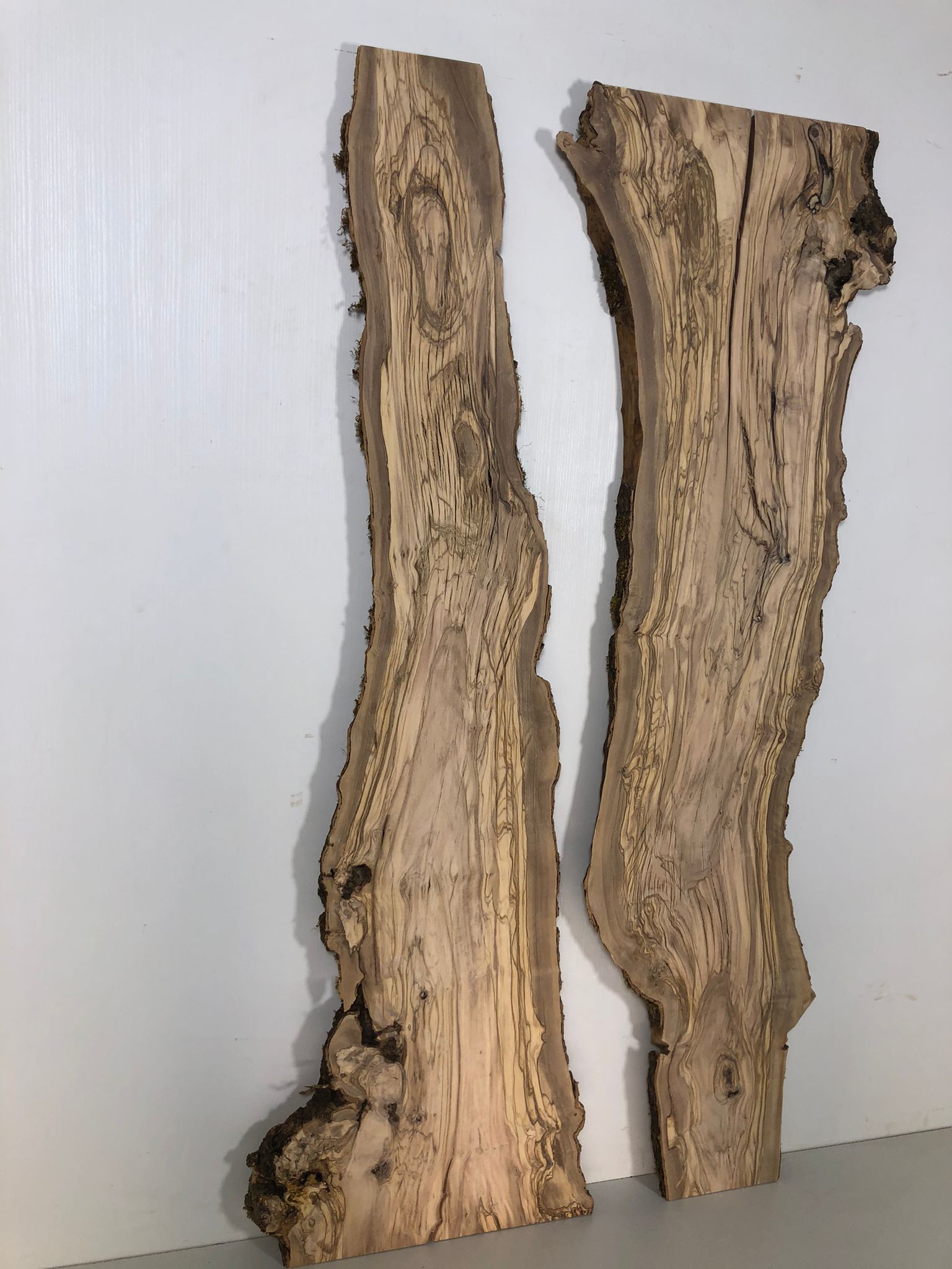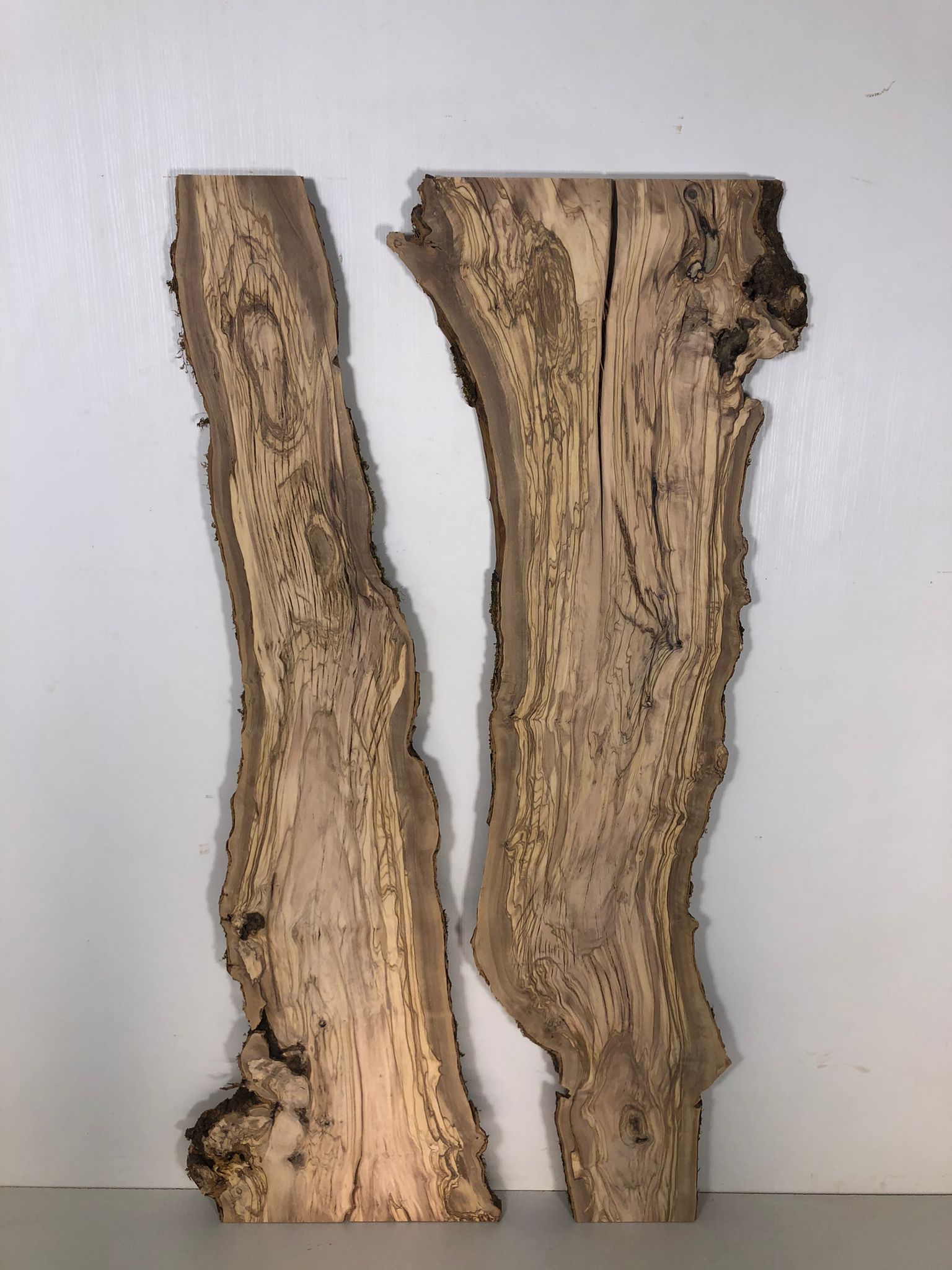 Set aus zwei Olivenholzbrettern – Erstklassige Maserung für Rivertable-Projekte
