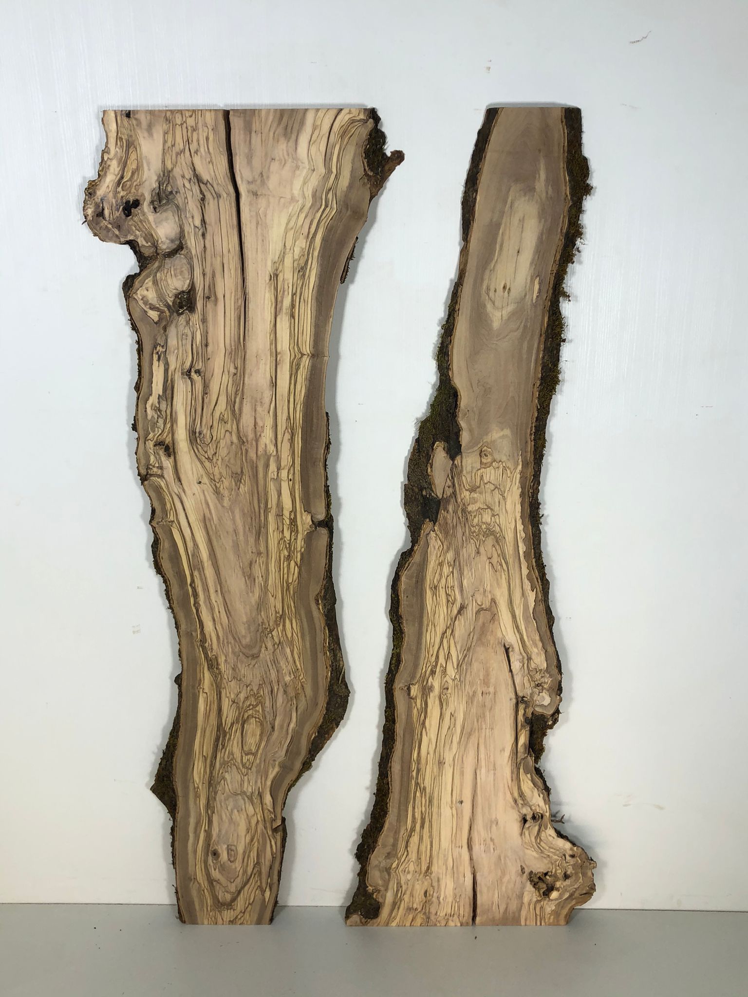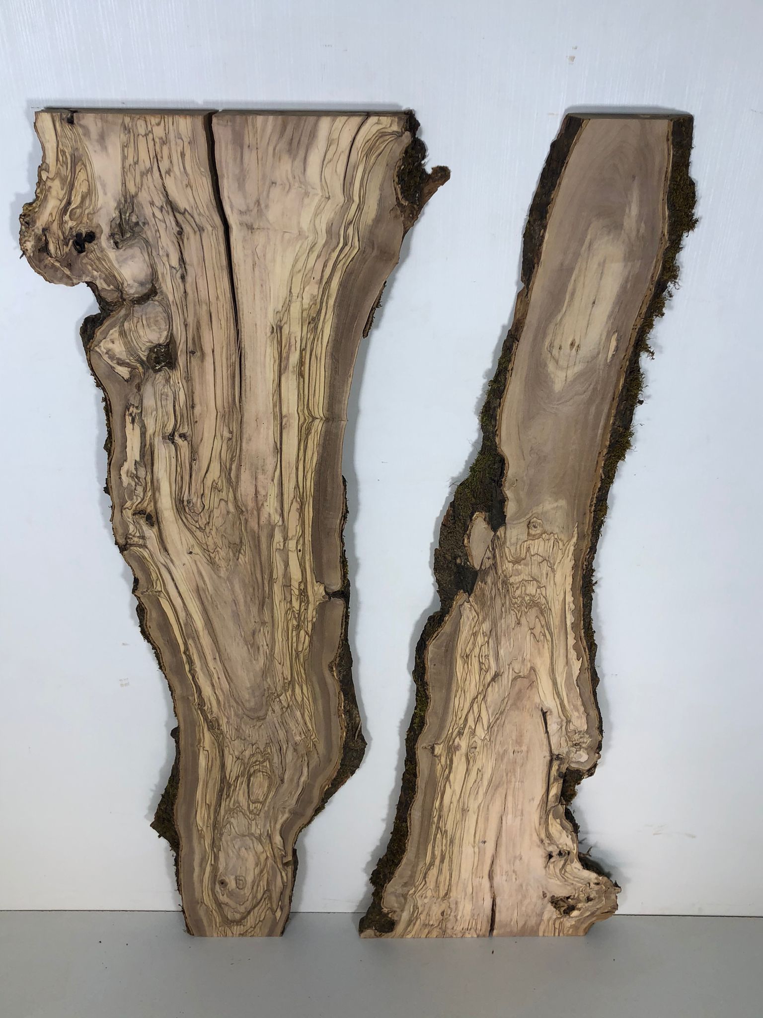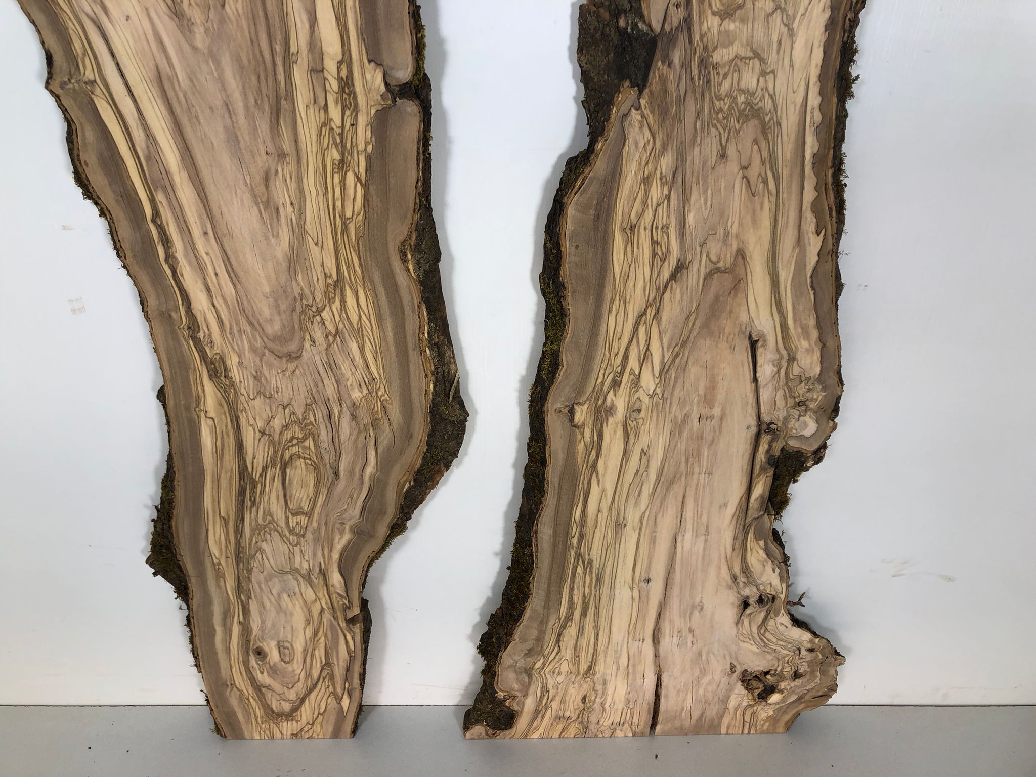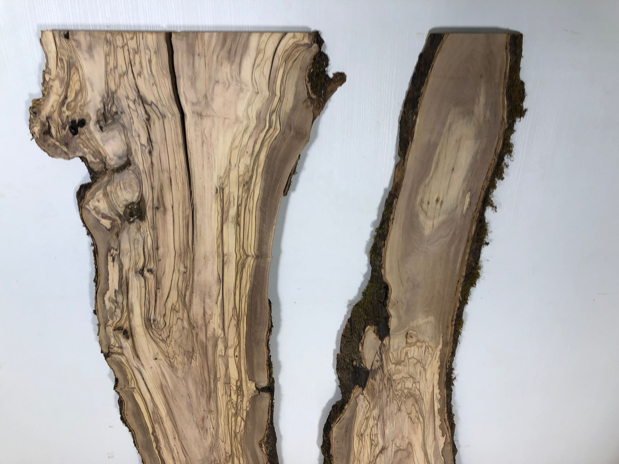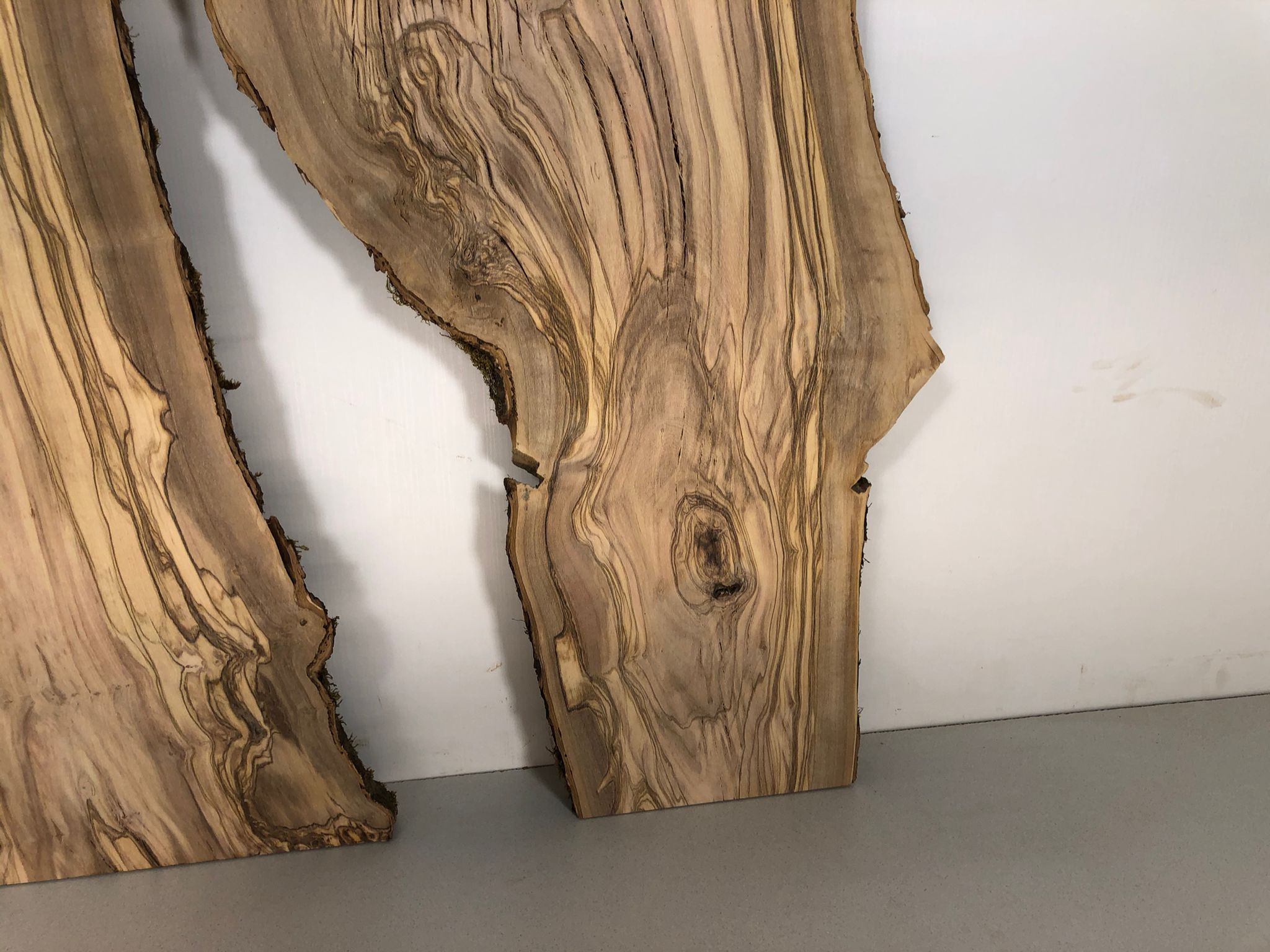 Set aus zwei Olivenholzbrettern – Erstklassige Maserung für Rivertable-Projekte