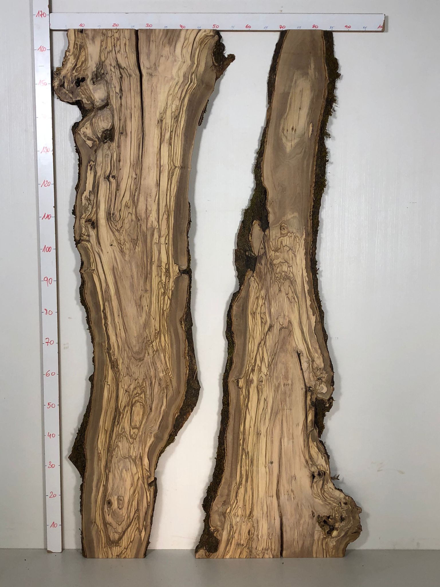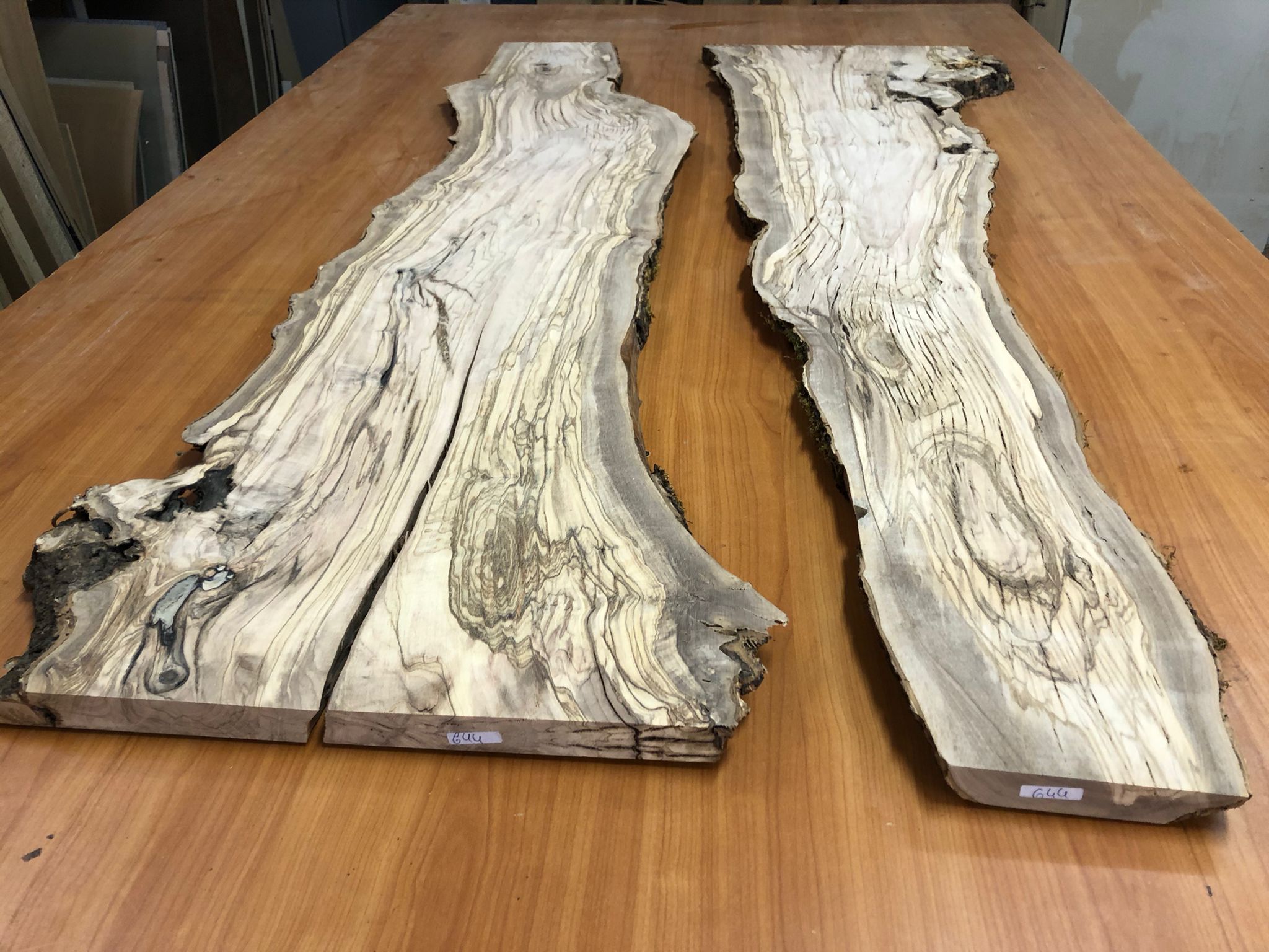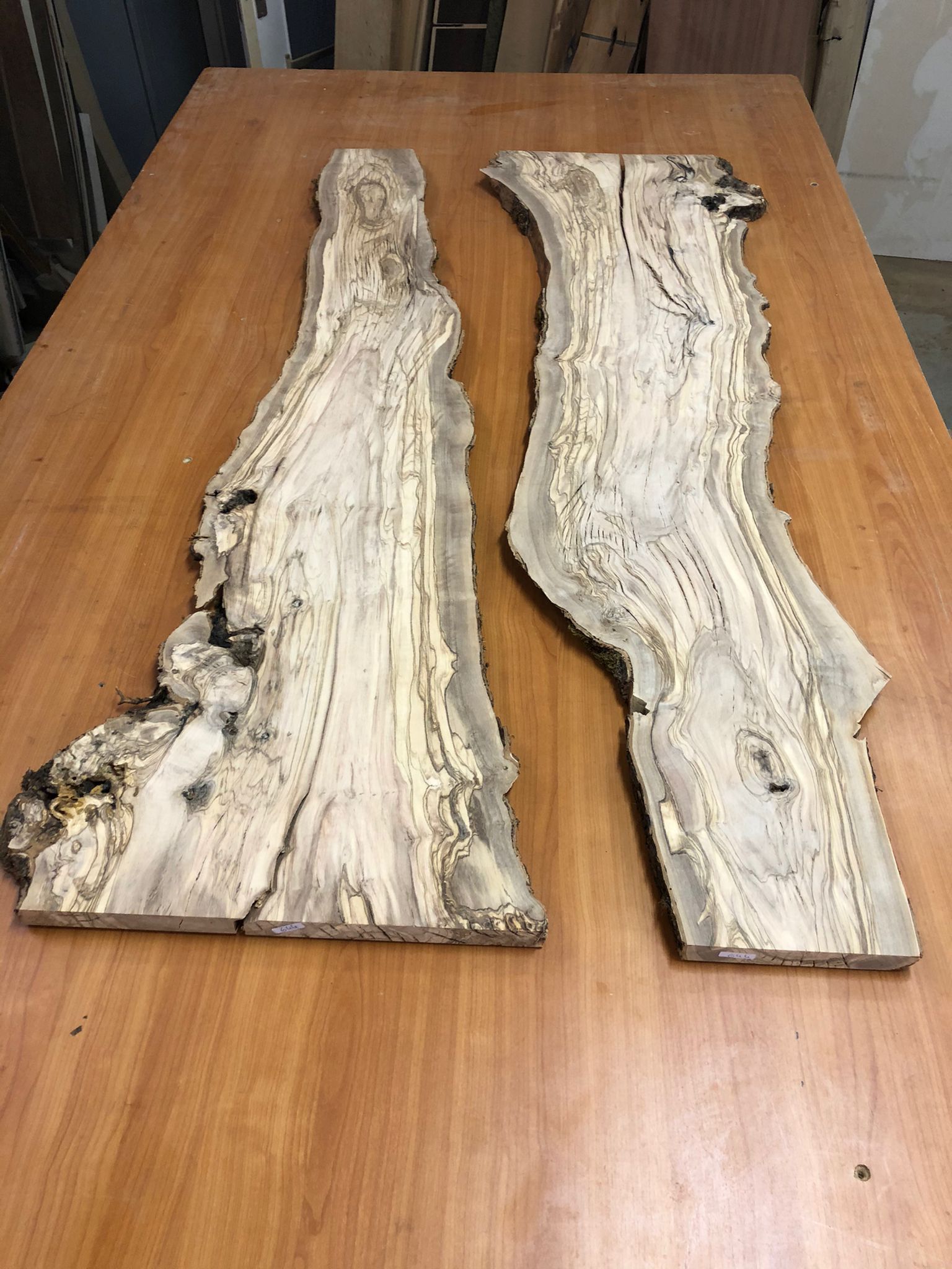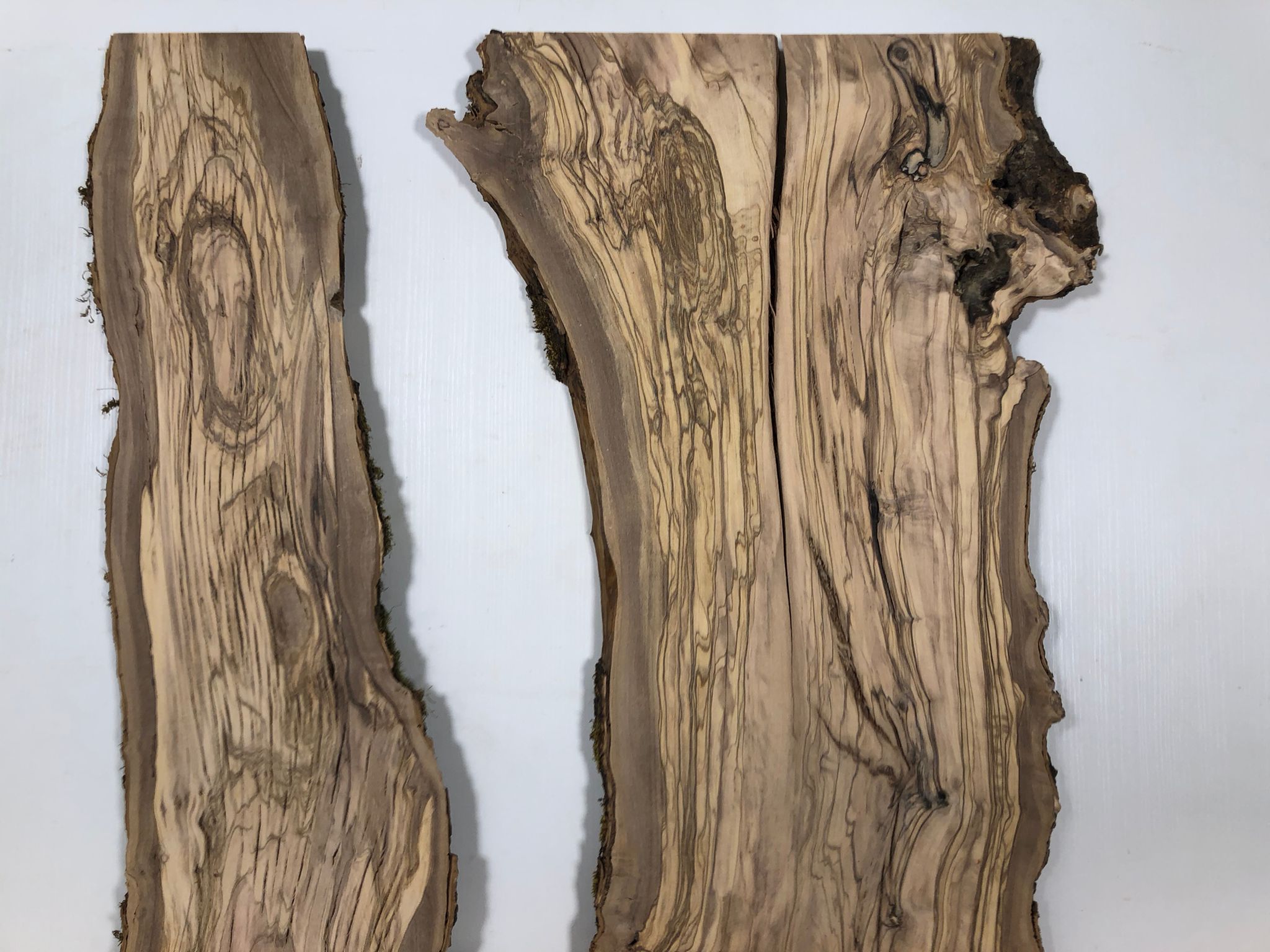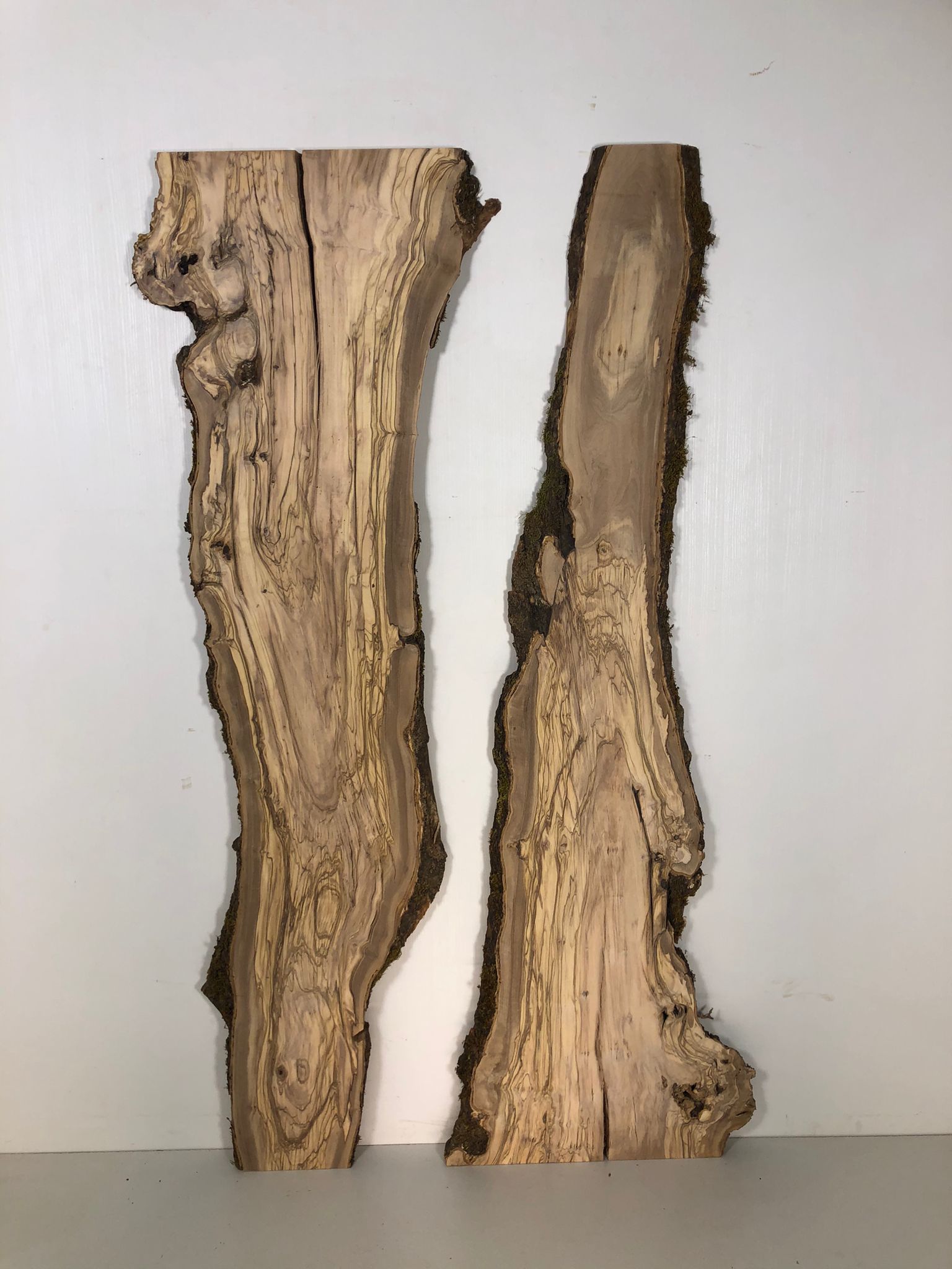Set aus zwei Olivenholzbrettern – Erstklassige Maserung für Rivertable-Projekte