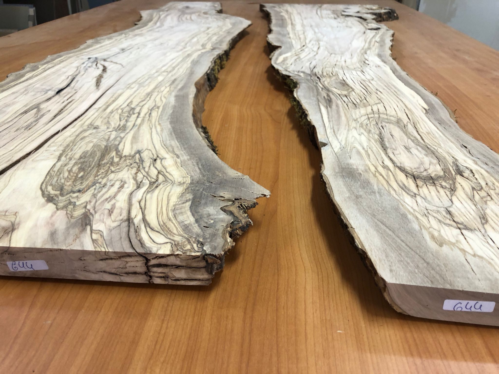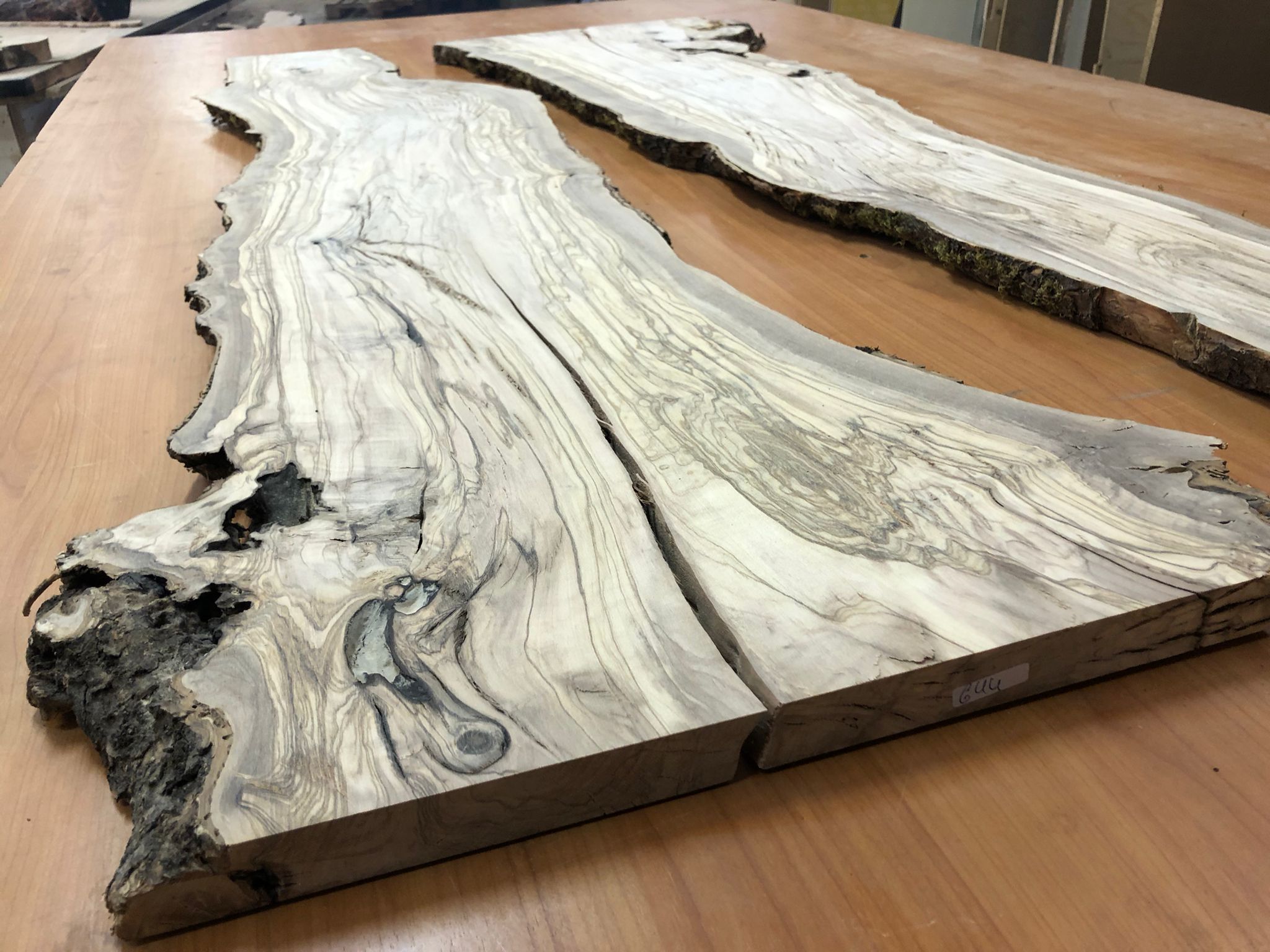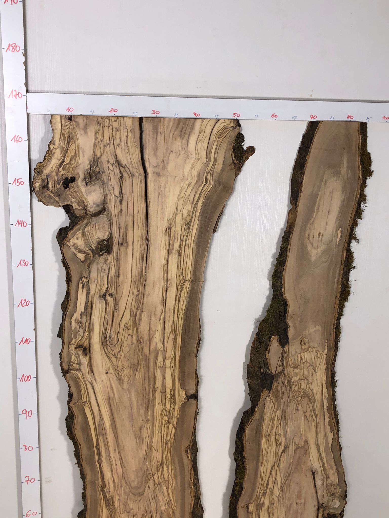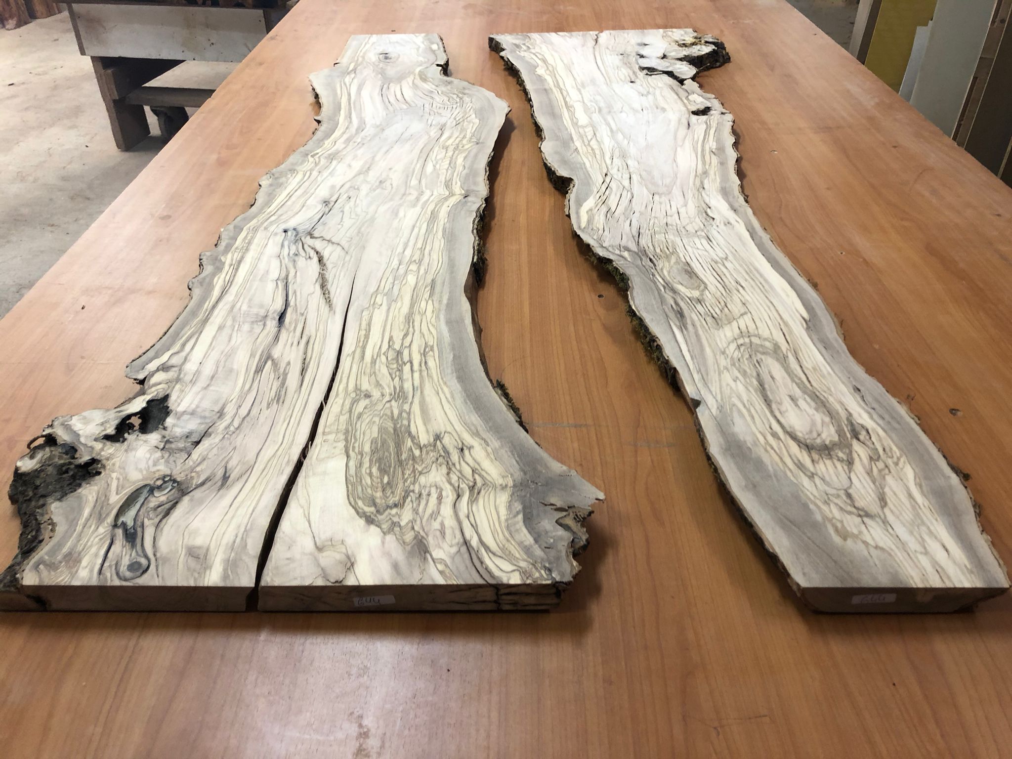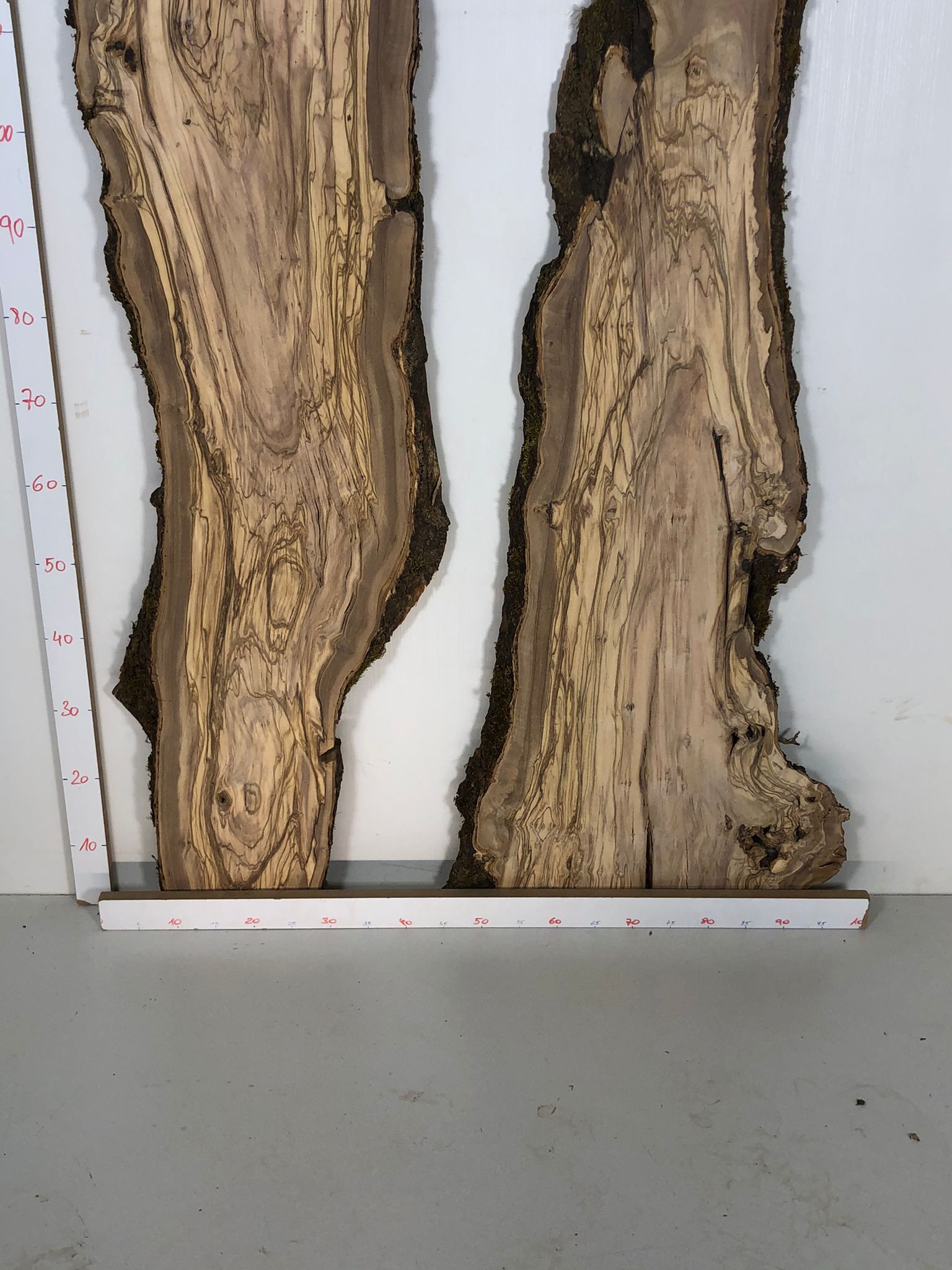 Set aus zwei Olivenholzbrettern – Erstklassige Maserung für Rivertable-Projekte