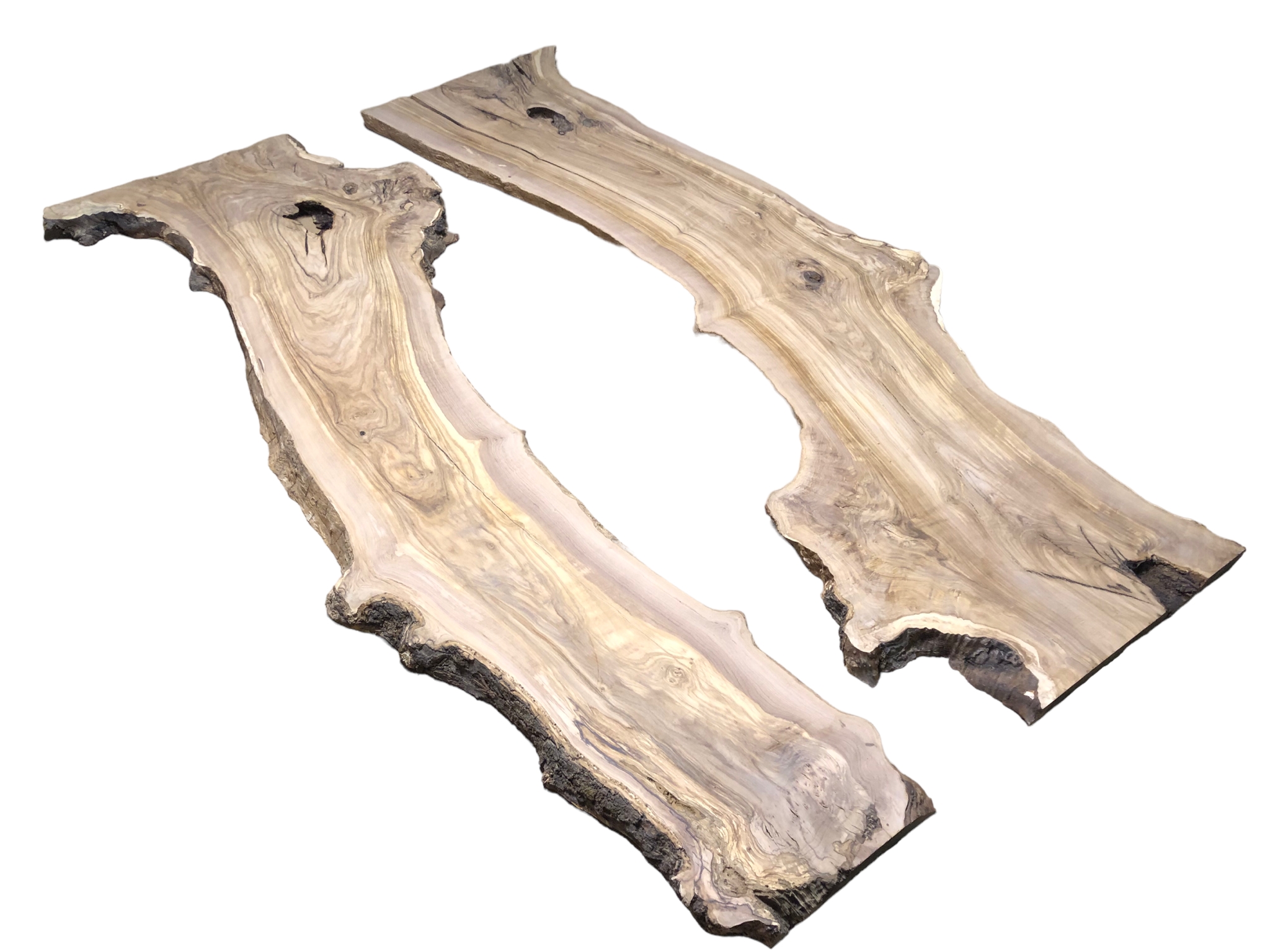 Vorbereitetes Rivertable Set – Zwei traumhaft strukturierte Olivenholzbretter