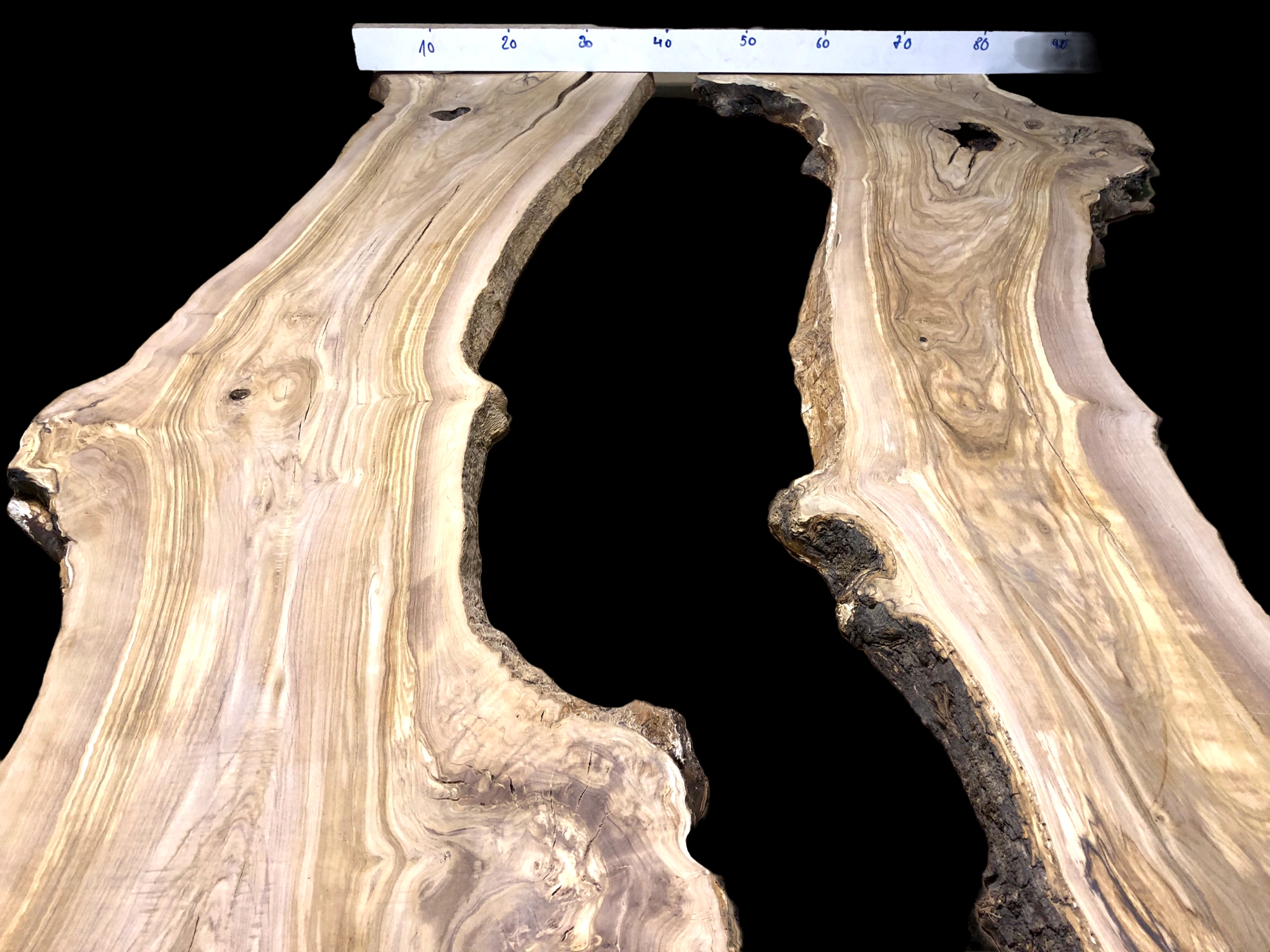 Dieses Set aus zwei traumhaft strukturierten Olivenholzbrettern wurde speziell für den Bau eines Rivertables zusammengestellt. Die Bretter wurden sorgfältig ausgewählt, um ein harmonisches und ästhetisch ansprechendes Gesamtbild zu gewährleisten.