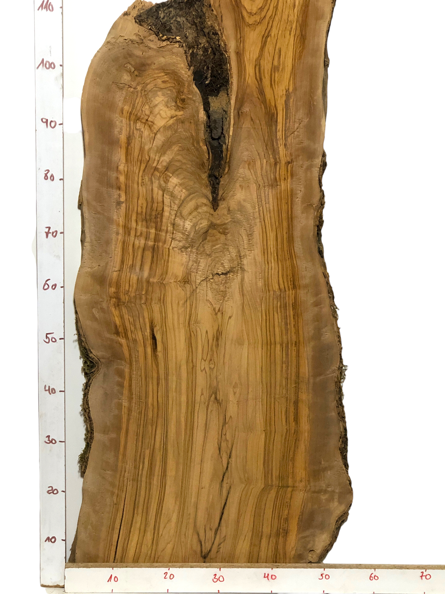 Dieses außergewöhnliche große und breite Olivenholzbrett stammt von einem über 400 Jahre alten Olivenbaum, was es zu einem wahren Unikat macht. Während Olivenbäume dieses Alters häufig löchrig oder hohl sind, besticht dieses Brett durch seine Massivität und Stabilität, die selten zu finden sind.