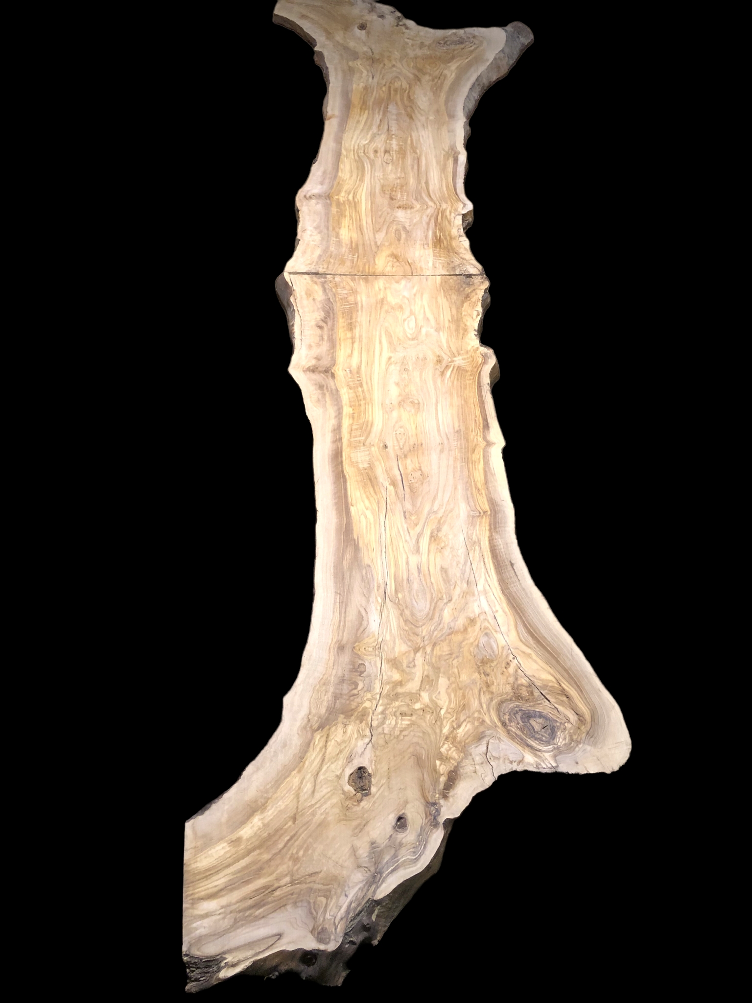 Die Platten wurden über fünf bis sechs Jahre schonend an der Luft getrocknet und sind bisher nur grob vorgeschliffen. Sie benötigen noch etwas Feinschliff, aber ihr Potenzial ist bereits jetzt deutlich zu erkennen.